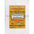 BOXING AT ARSENAL Programme for Islington Boxing Select v Ulster Boxing Select 21/10/2011 at the Royal Oak Suite at the Emirates Stadium. Good