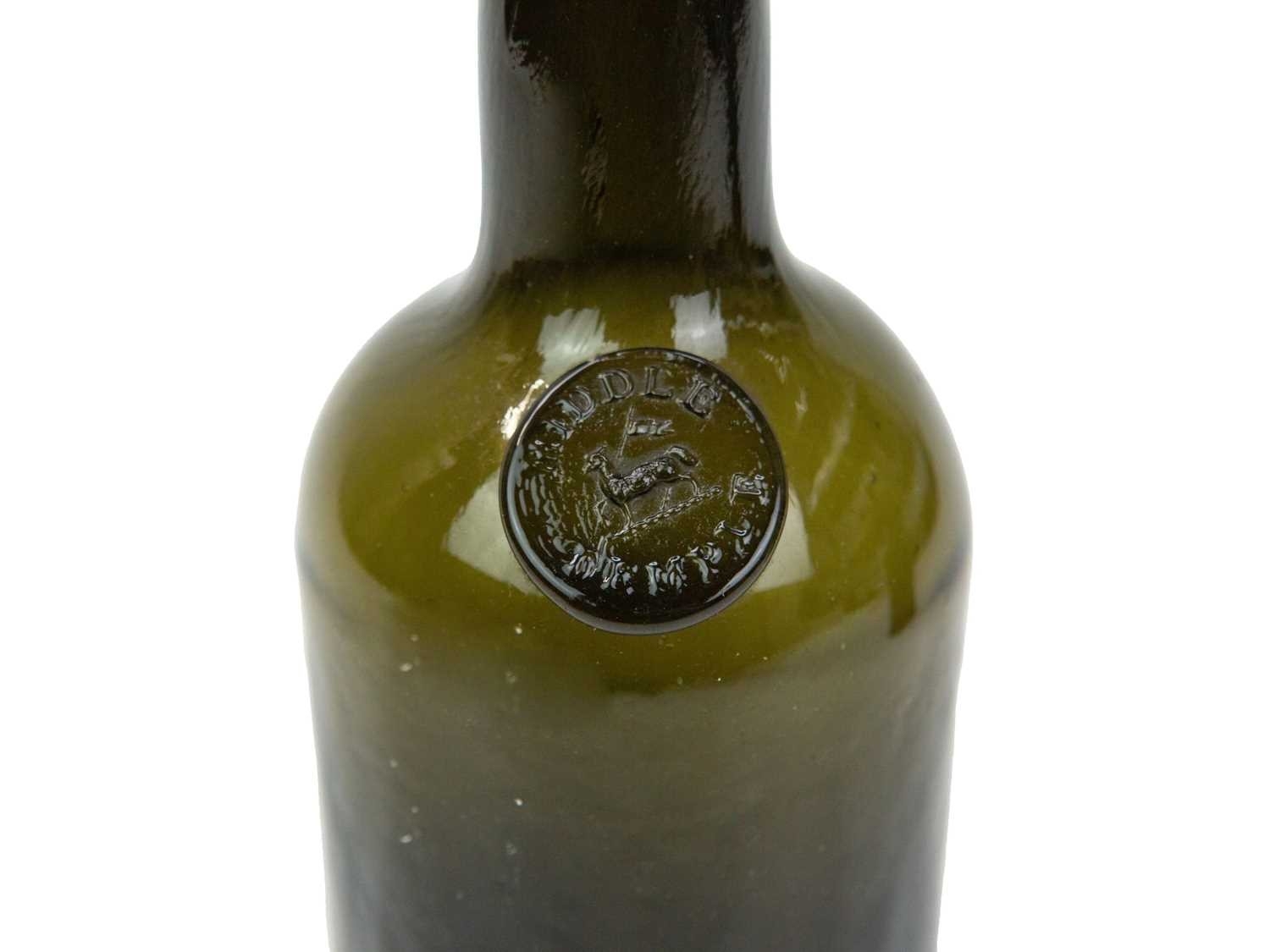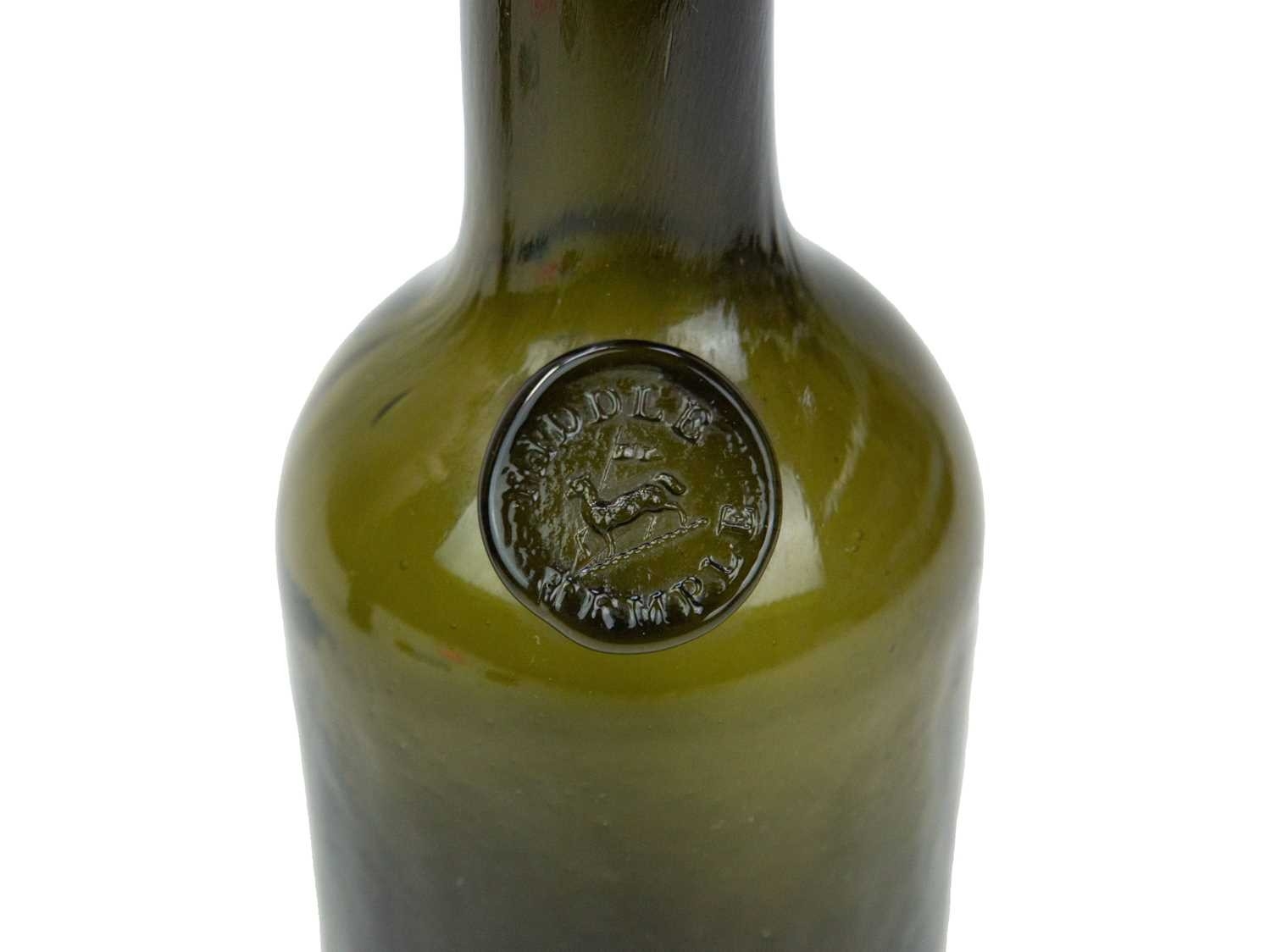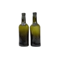 Two sealed green glass half wine bottles. Circa 1820, each with Middle Temple seals with a lamb and flag, height 22.5cm (2).