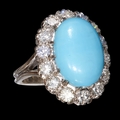 DIAMOND CLUSTER RING, in 18 ct. gold. Set with a large turquoise?. Size K. 9.7 grams.