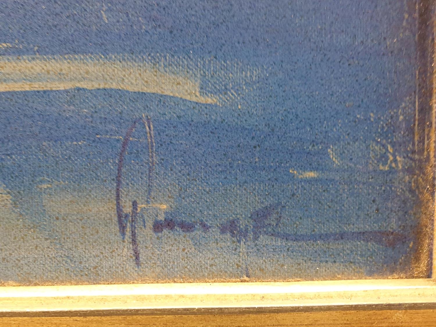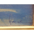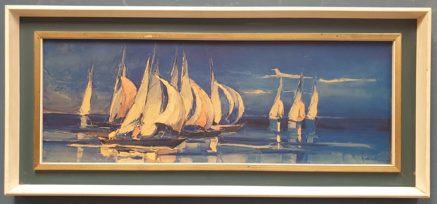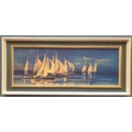 Framed Painting on Board Regatta Blue and Gold, H:46 x W:106cm