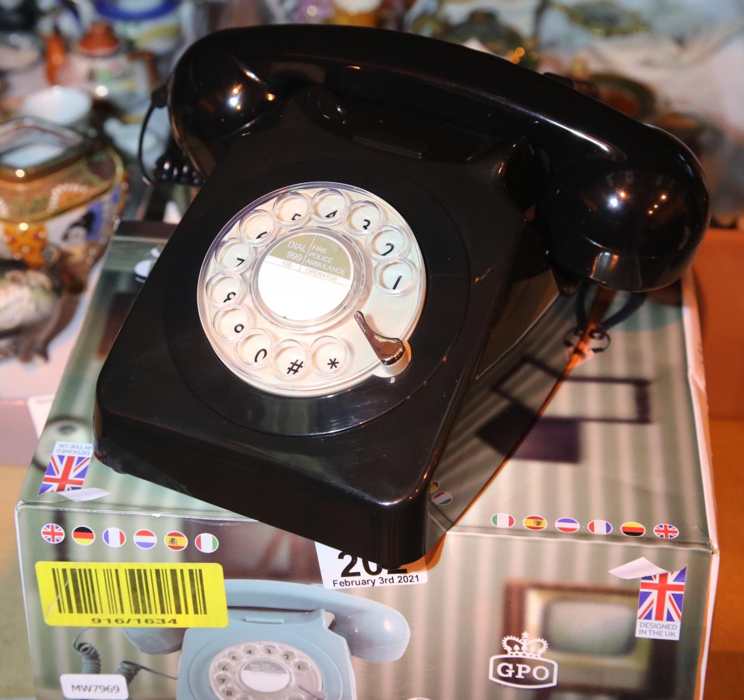 Black retro Rotary phone replica of the 1970s GPO746 classic phone, compatible with modern telephone banking and any standard analogue landline, with instructions and boxed. P&P Group 1 (£14+VAT for the first lot and £1+VAT for subsequent lots)