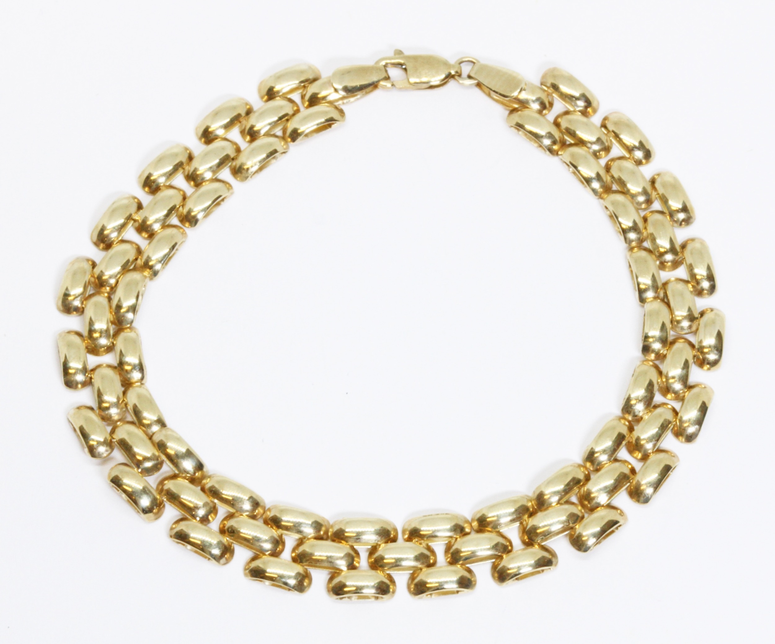 A rice bead link bracelet, marked '375', length 20cm, weight 8.8g.