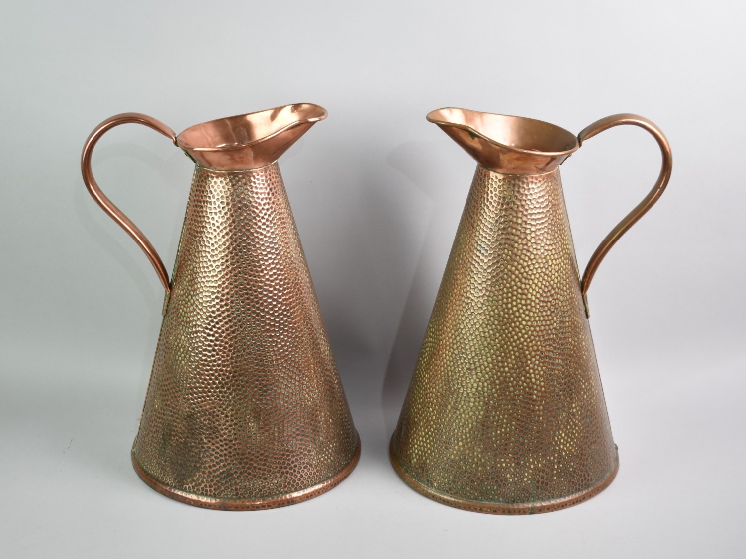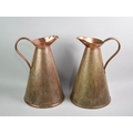 A Pair of Arts and Crafts Copper Ewers by Joseph Sankey, Stamped 12 to Base, 37cms High
