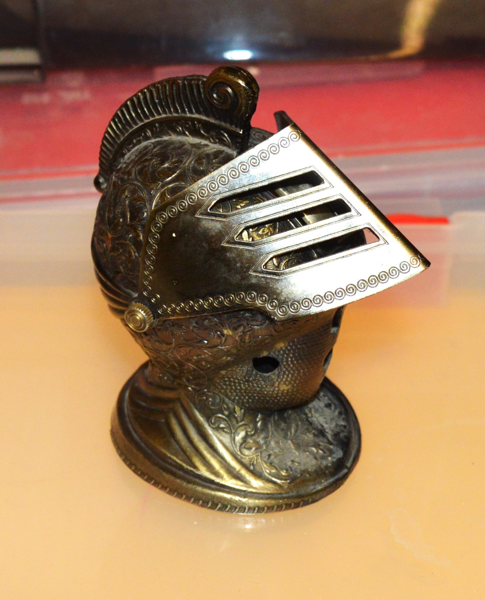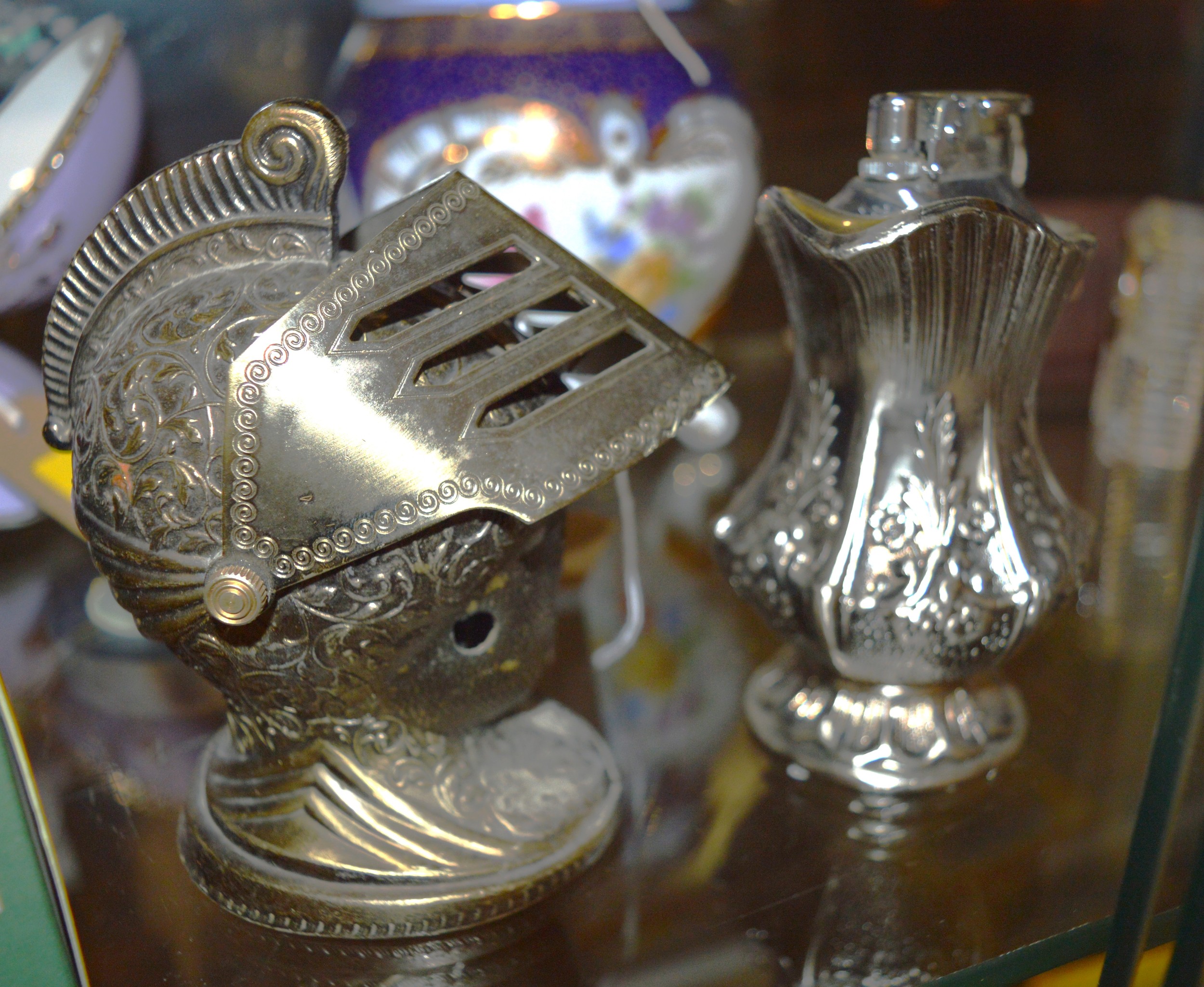 Knight's Head Design Cigarette Lighter (Japanese Made), Plus One Pewter Table Lighter in Form of a Ewer