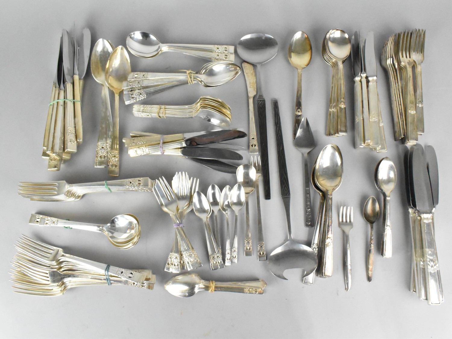An Oneida Community Plate Hampton Court Pattern Cutlery Set Together with a Walker and Hall Example etc