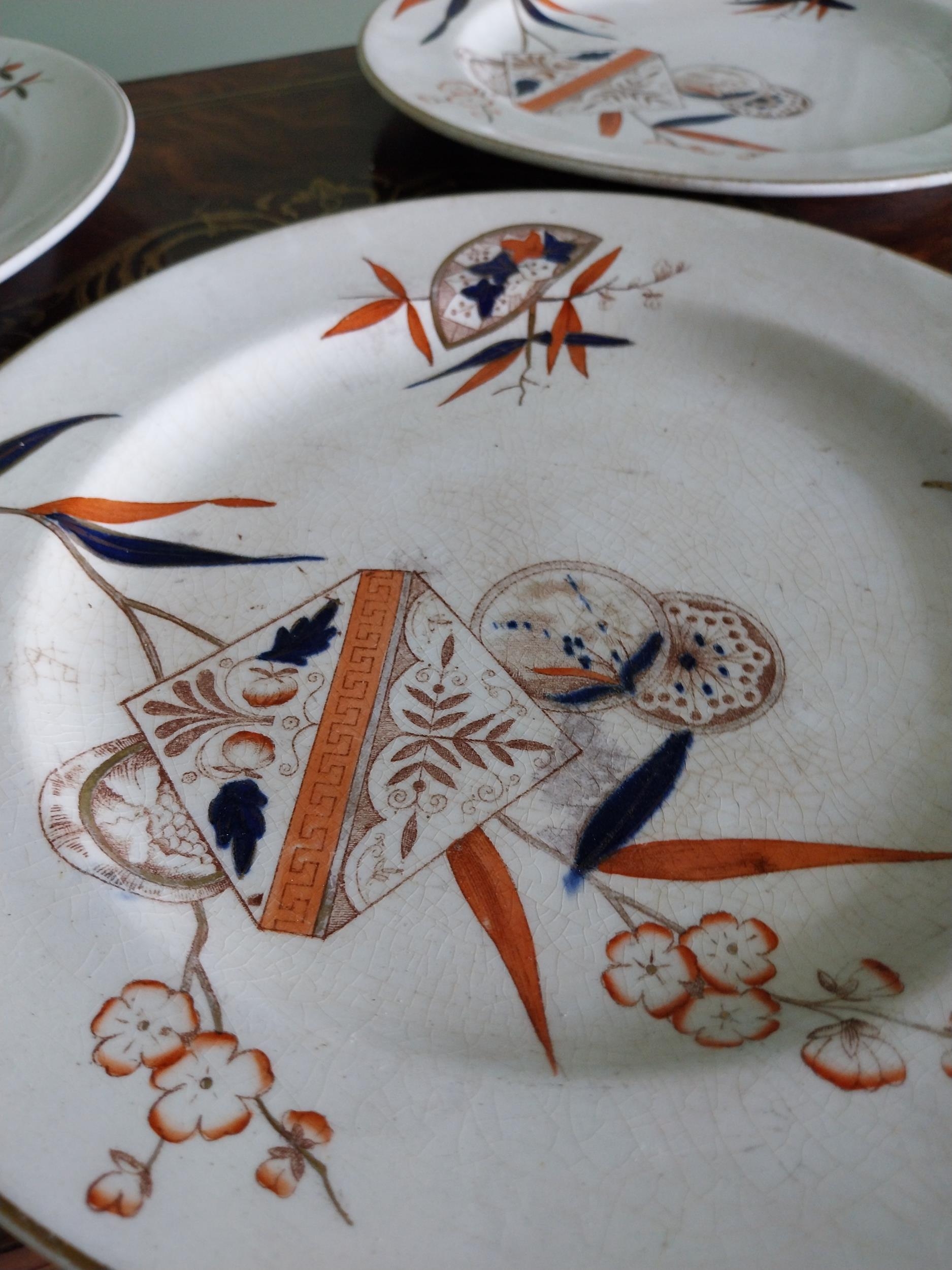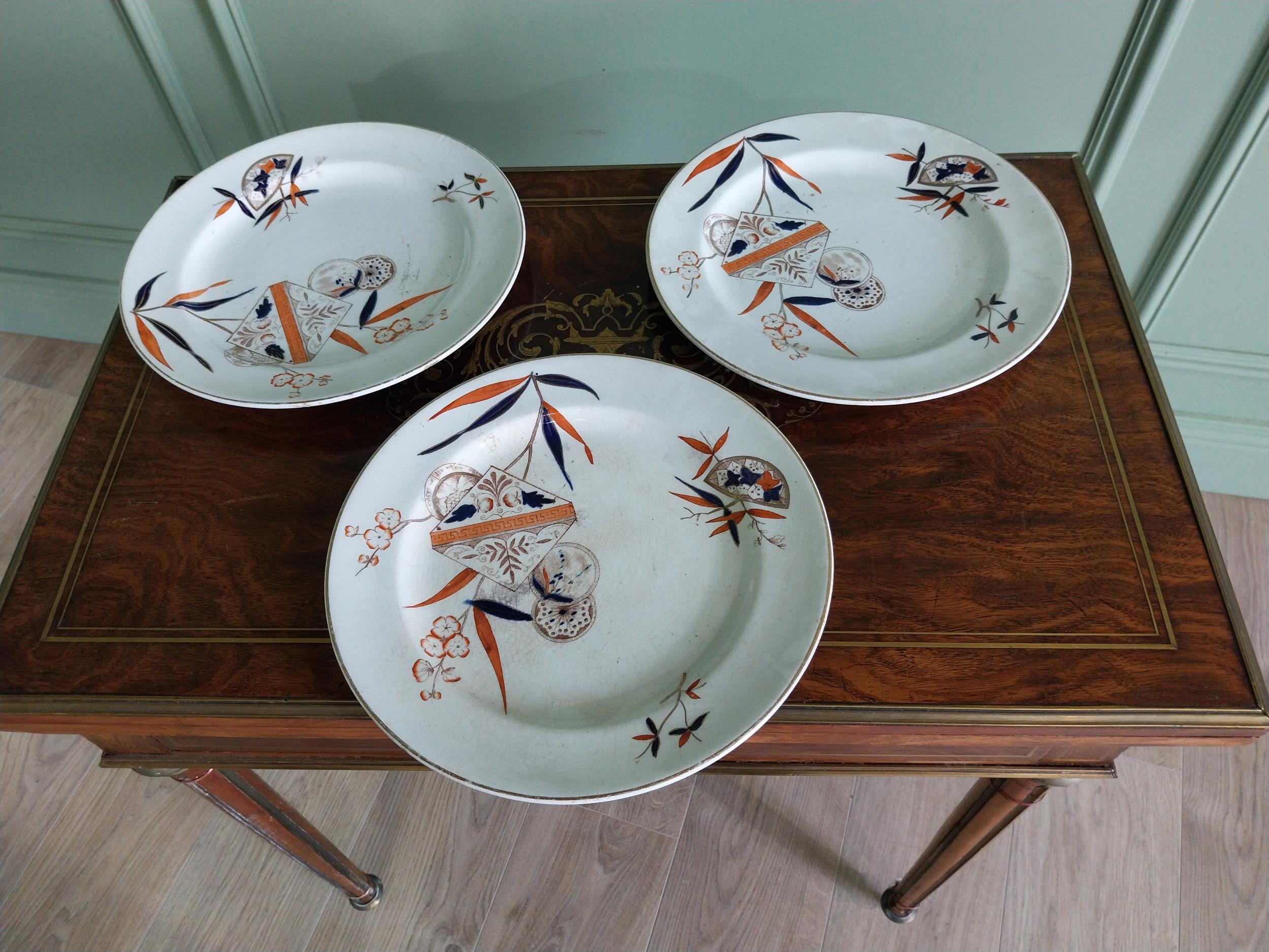 Three first period Belleek dinner plates {27 cm Dia.}.
