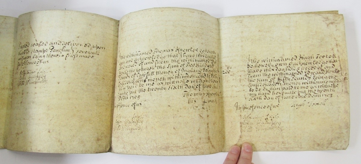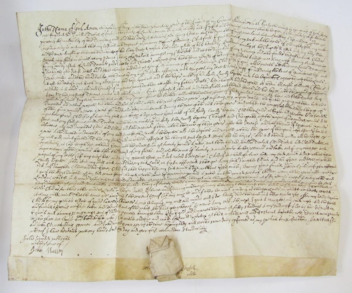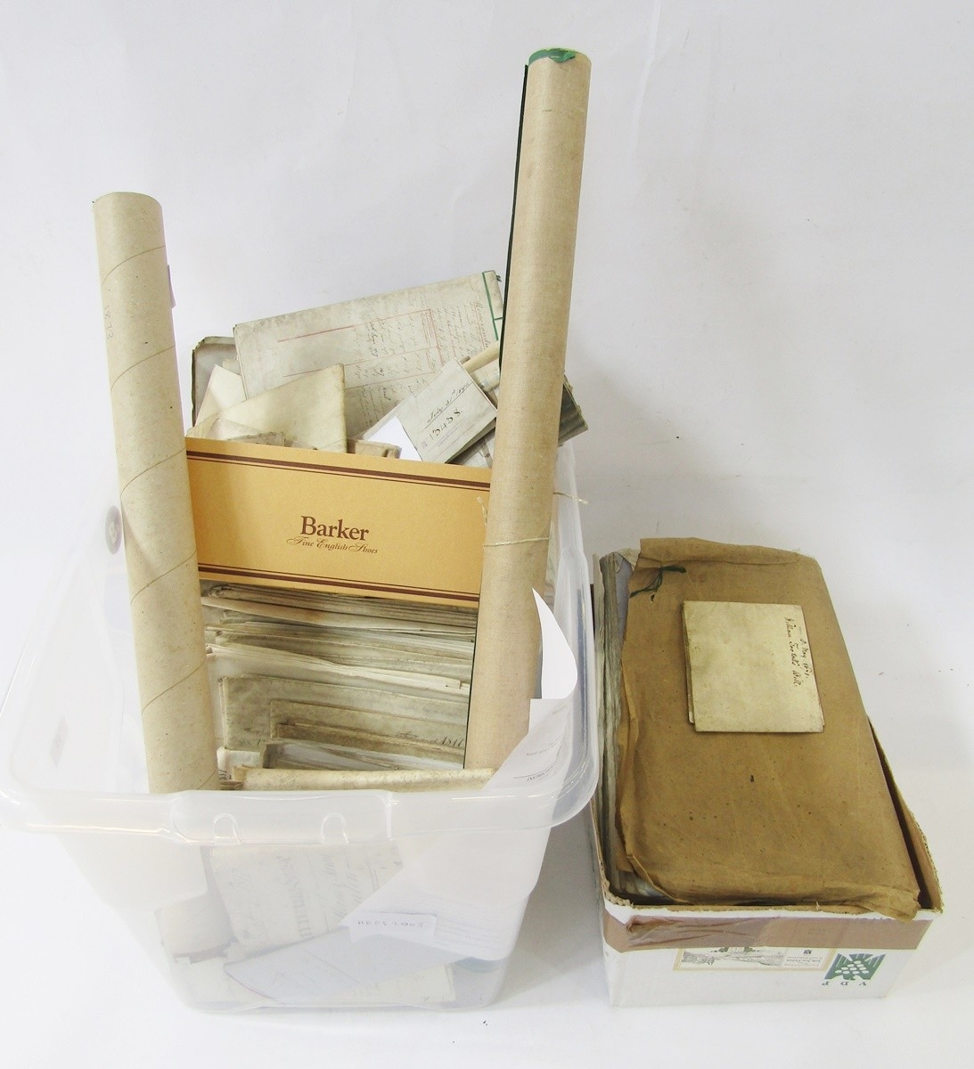 Quantity of indentures, wills and other documents, 17th century and later, to include will dated 8th May 1671, another document dated 1690, various 19th century documents (2 boxes)