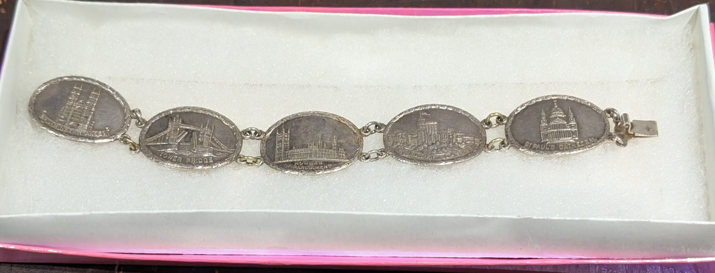 Vintage Sterling Silver Landmarks Panel Bracelet