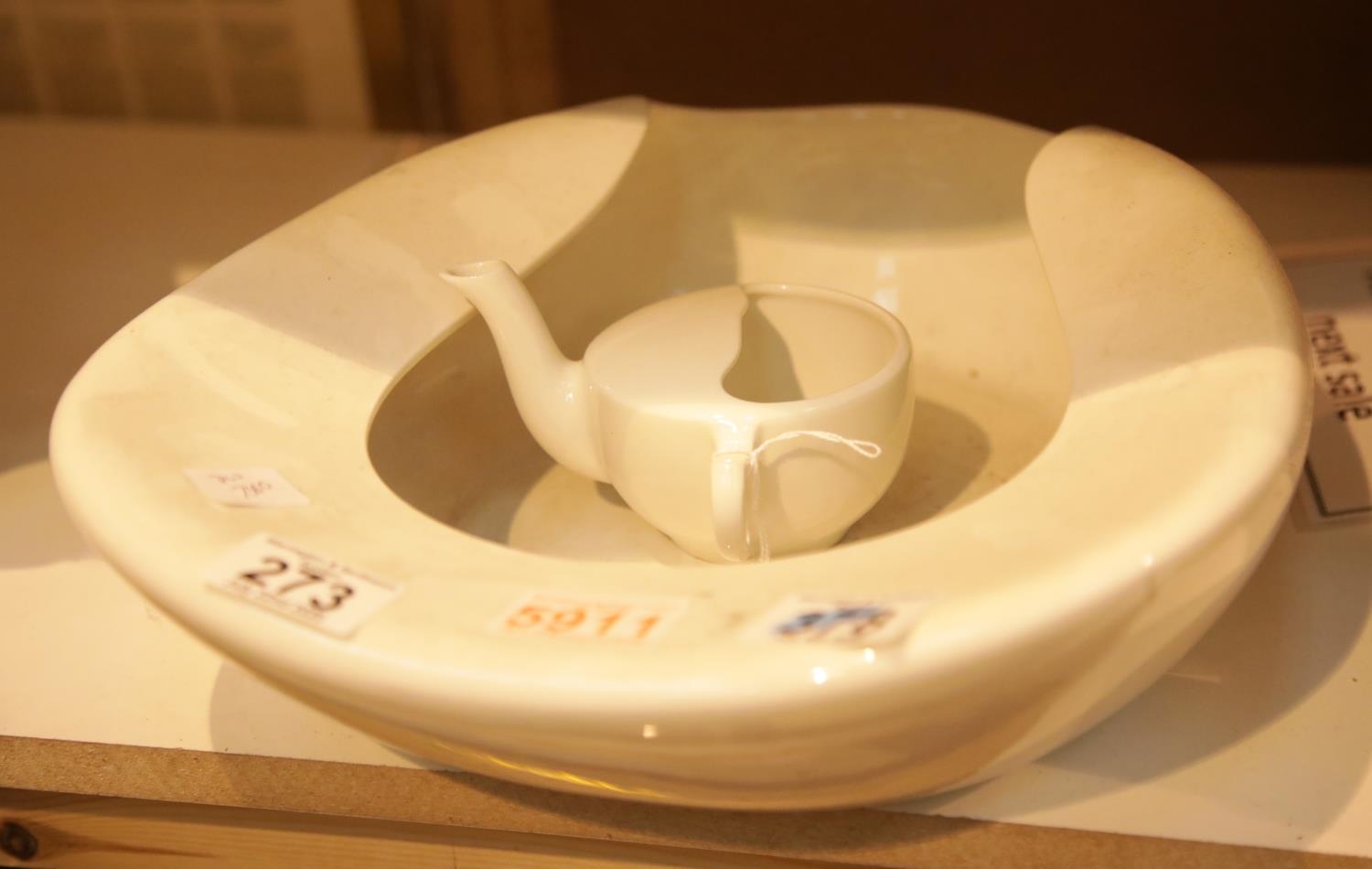 Vintage ceramic bedpan and ceramic invalid cup. This lot is not available for in-house P&P.
