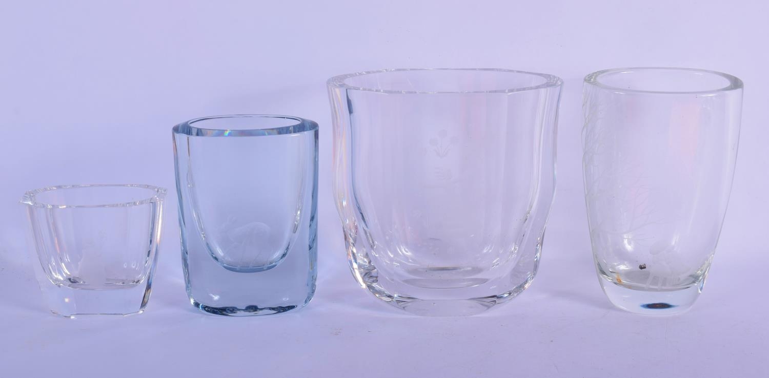 FOUR EUROPEAN ART GLASS VASES. 16 cm x 12 cm. (4)