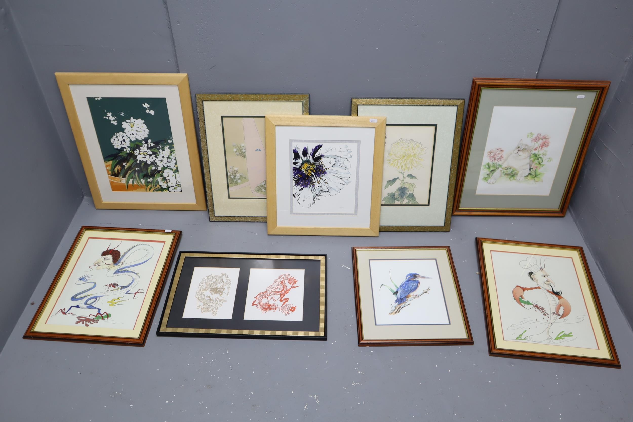 Collection of Nice Quality Signed Framed and Glazed Artwork by Two Artist Being a J Vernon and Julie of Various Subjects