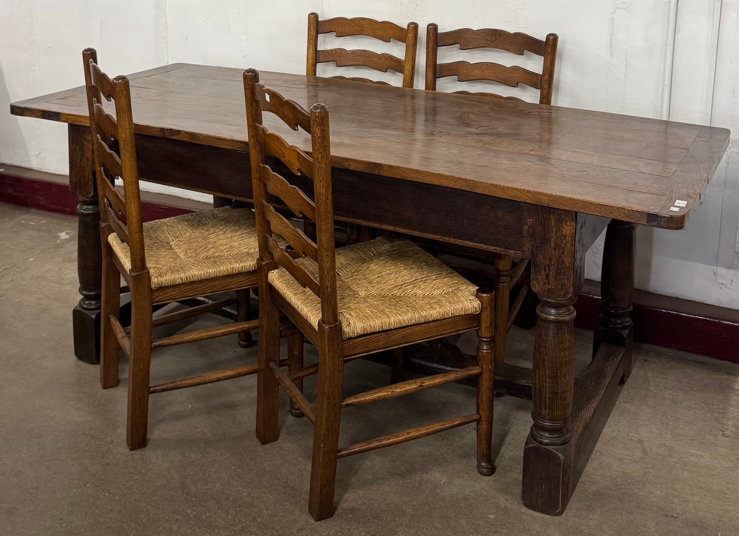 An 18th Century style oak refectory table and four chairs