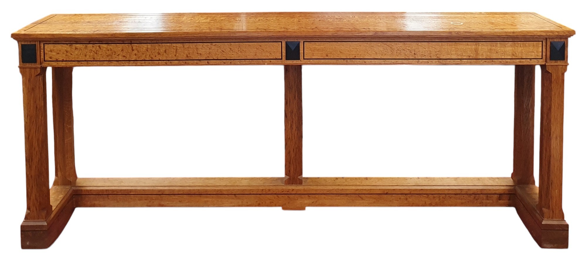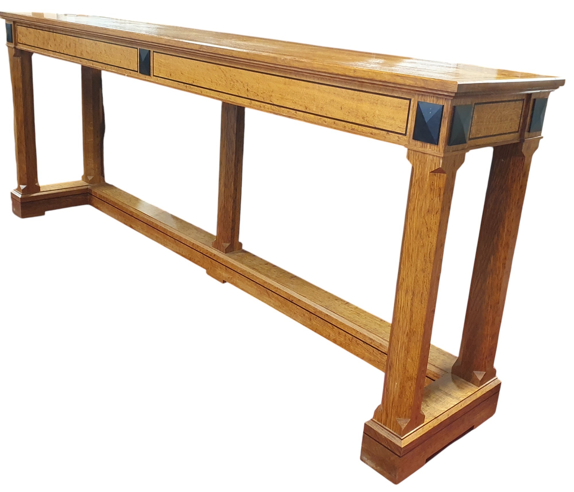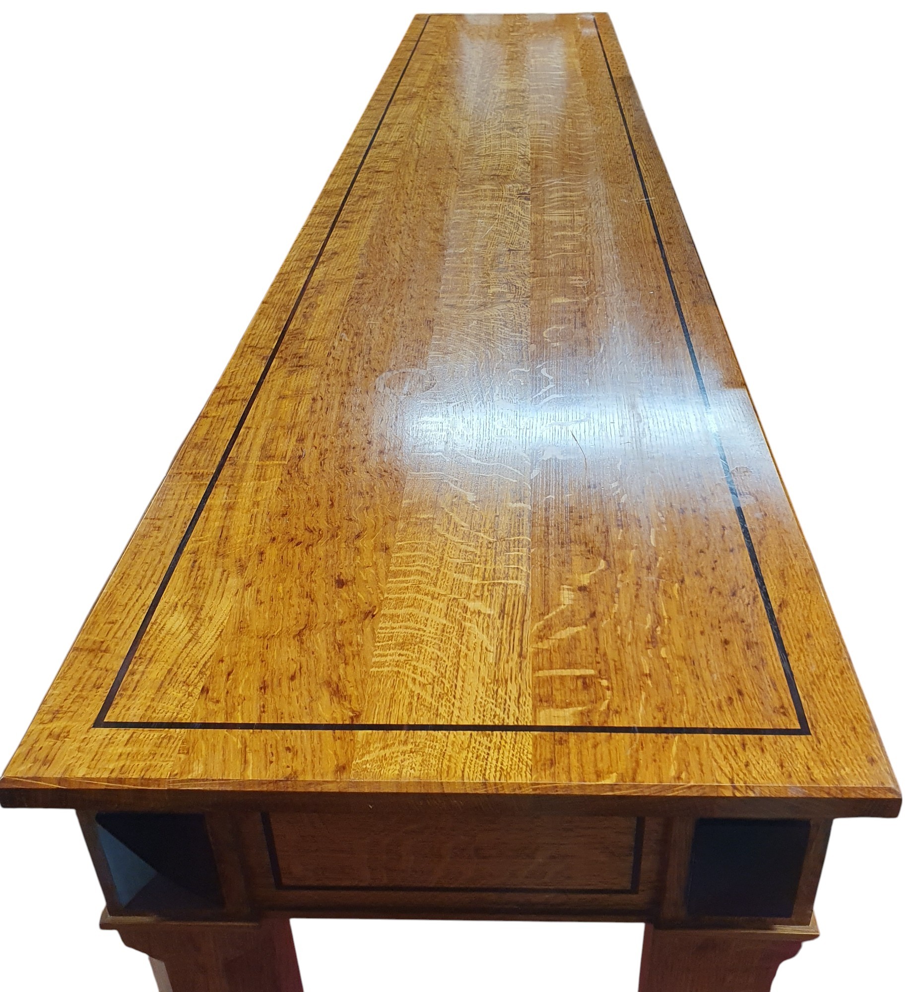 A fantastic bespoke David Linley Brown English Oak Serving/Side Table with Ebony inlay and mounts. 250 x 48 x H 100 cm approx.