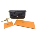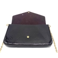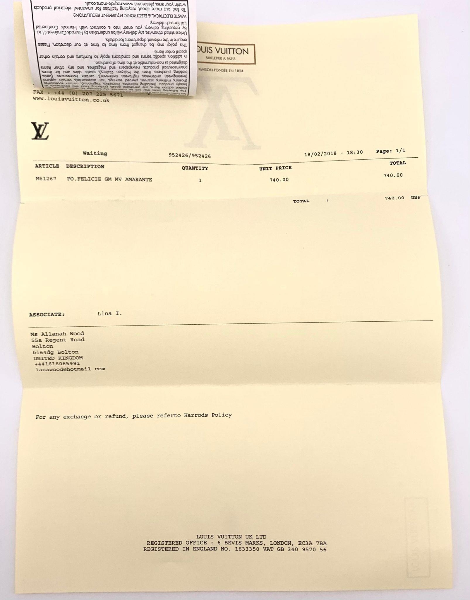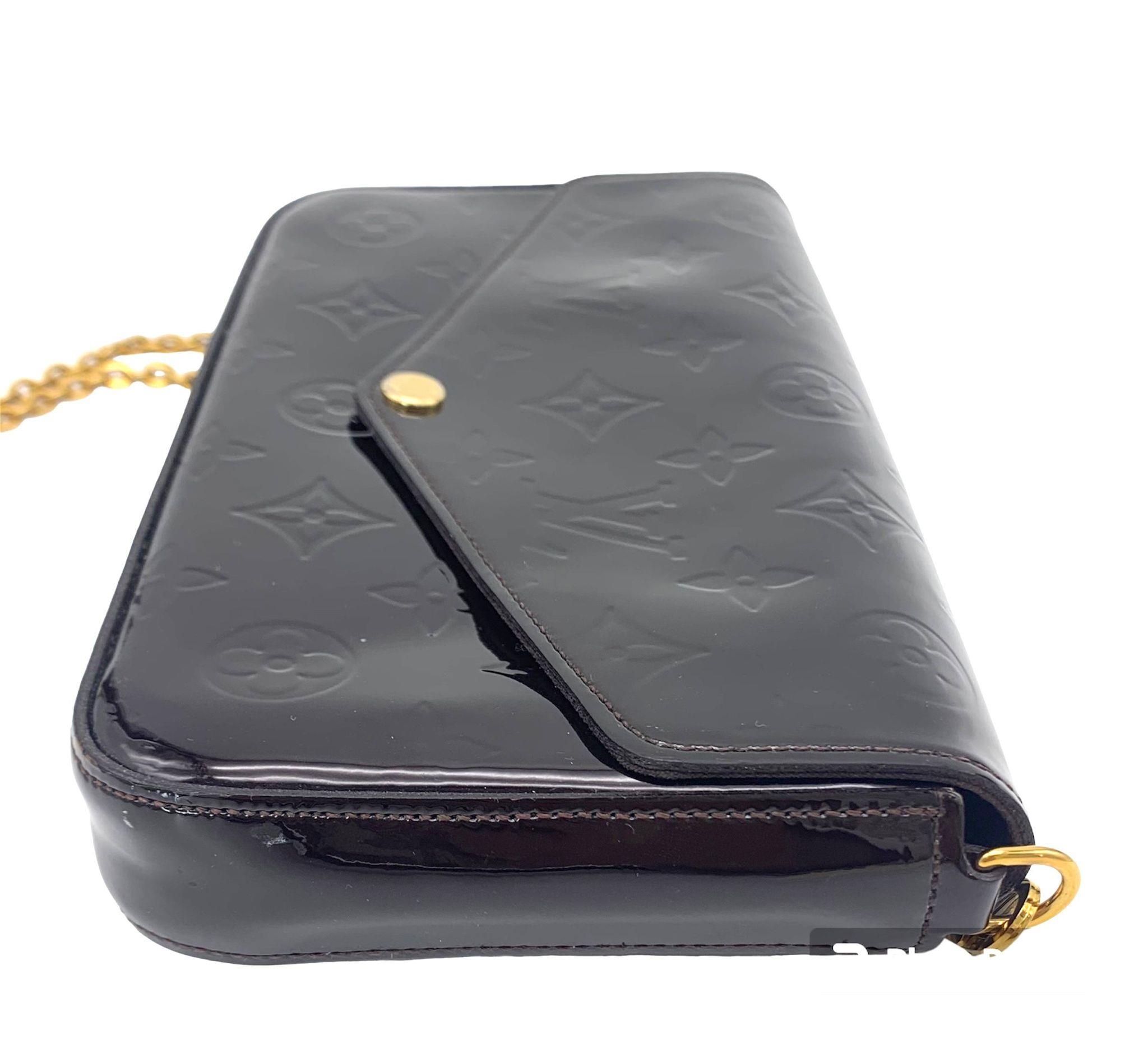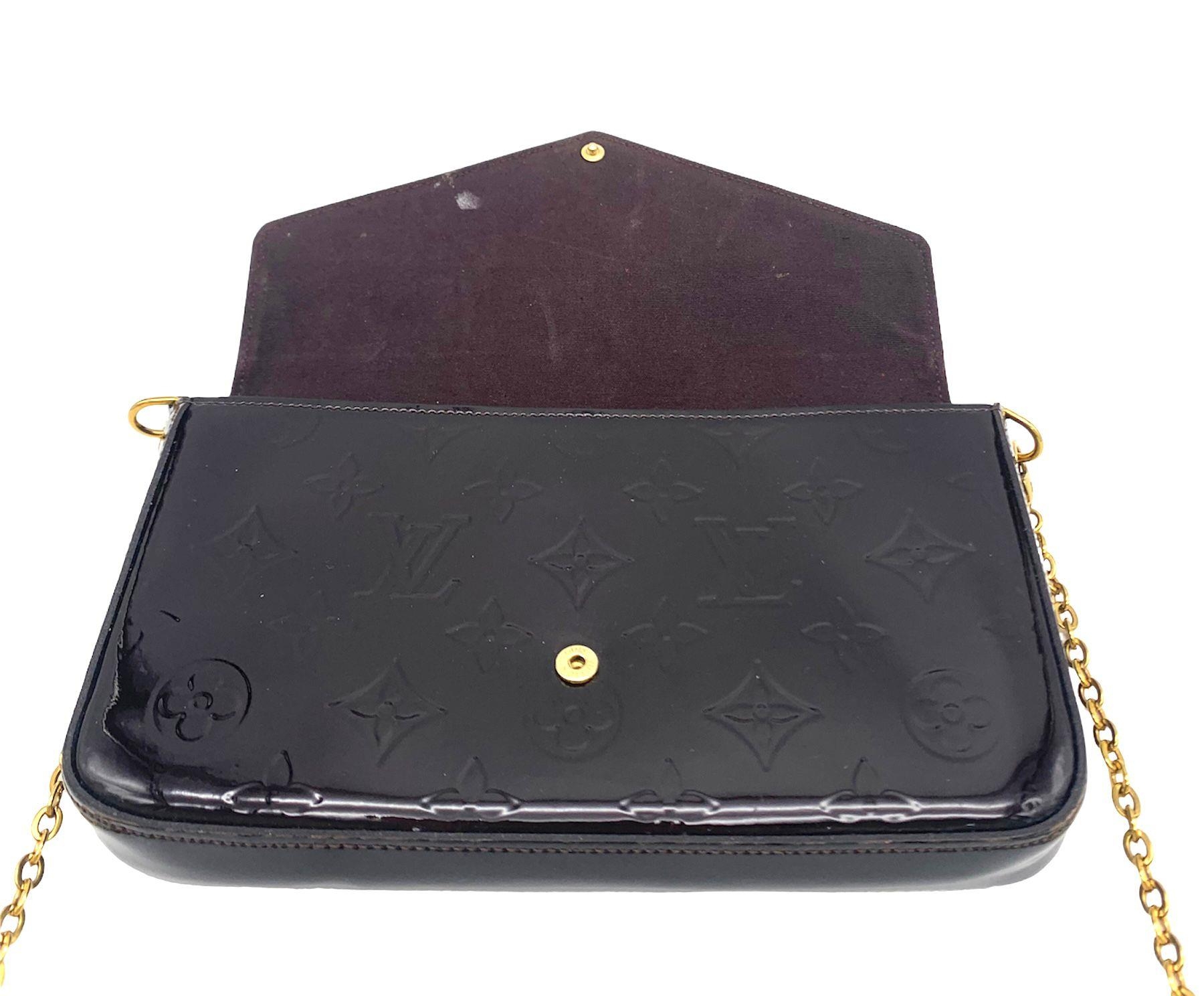 A Louis Vuitton Burgundy Patent Leather Bag. Monogram exterior with gilded handle. Textile interior with open compartment. Comes with the original receipt. In very good condition but please see photos. 21cm x 12cm. Ref: 13540