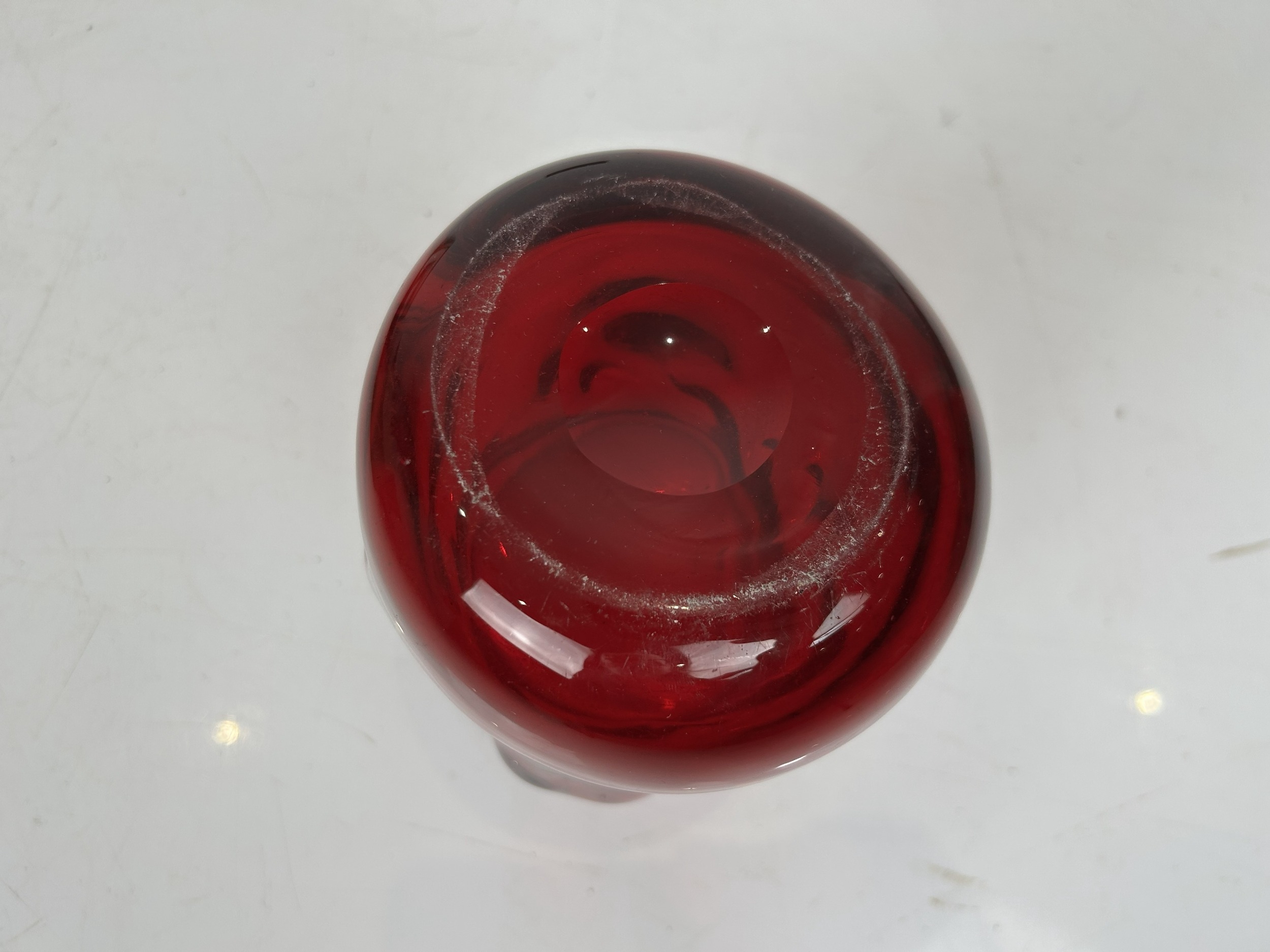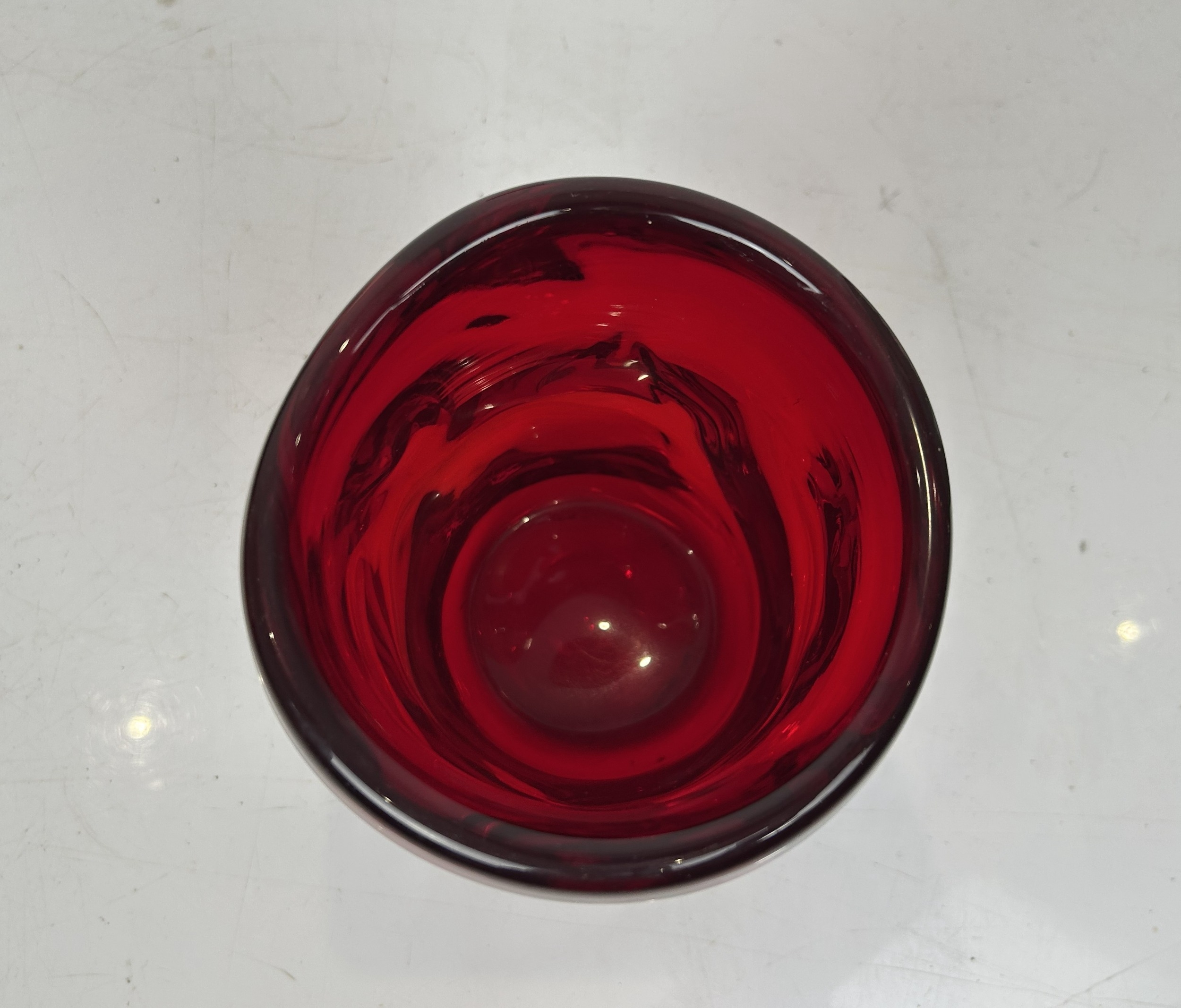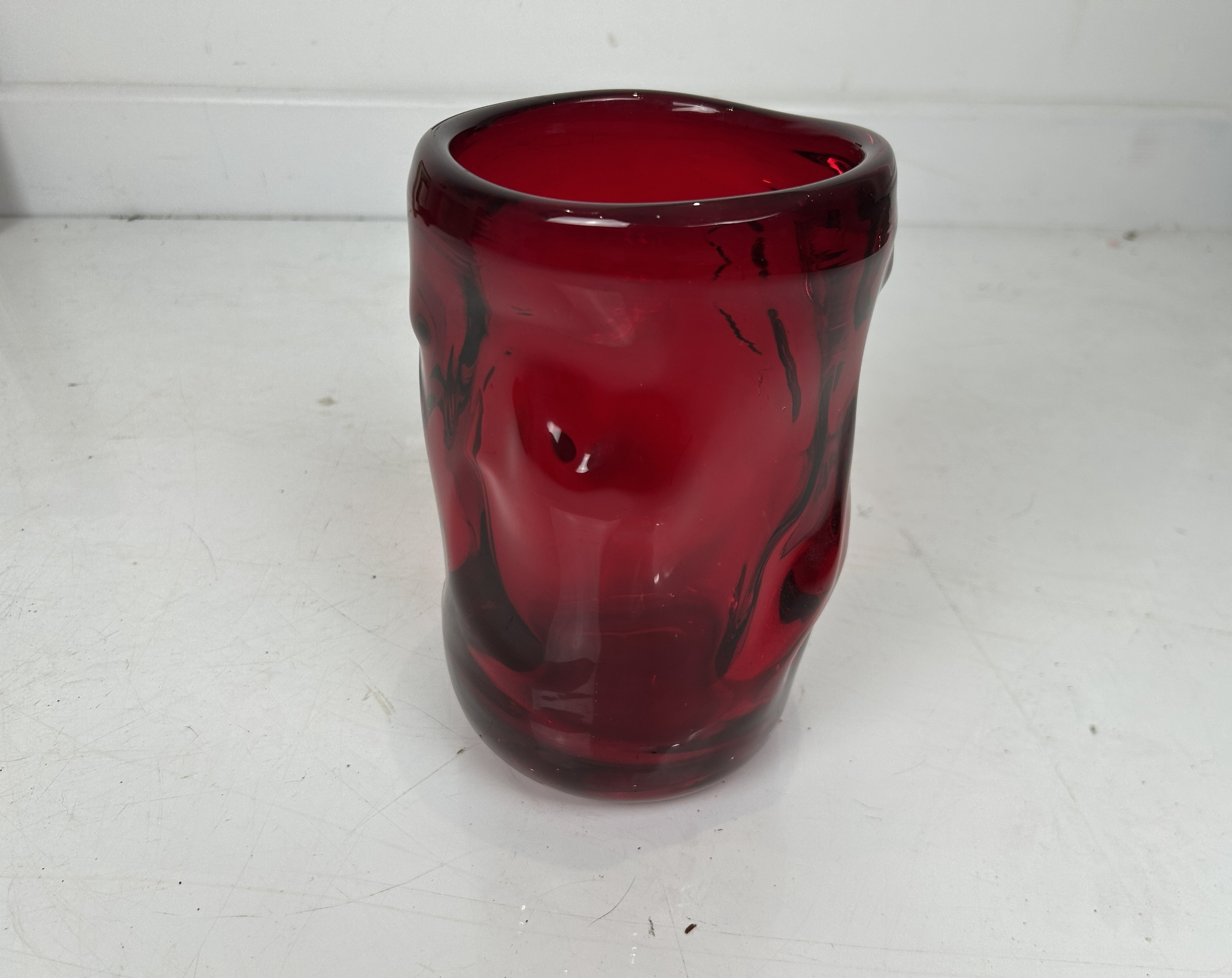 Heavy Red Knobbly Glass Vase in the manner of whitefriars