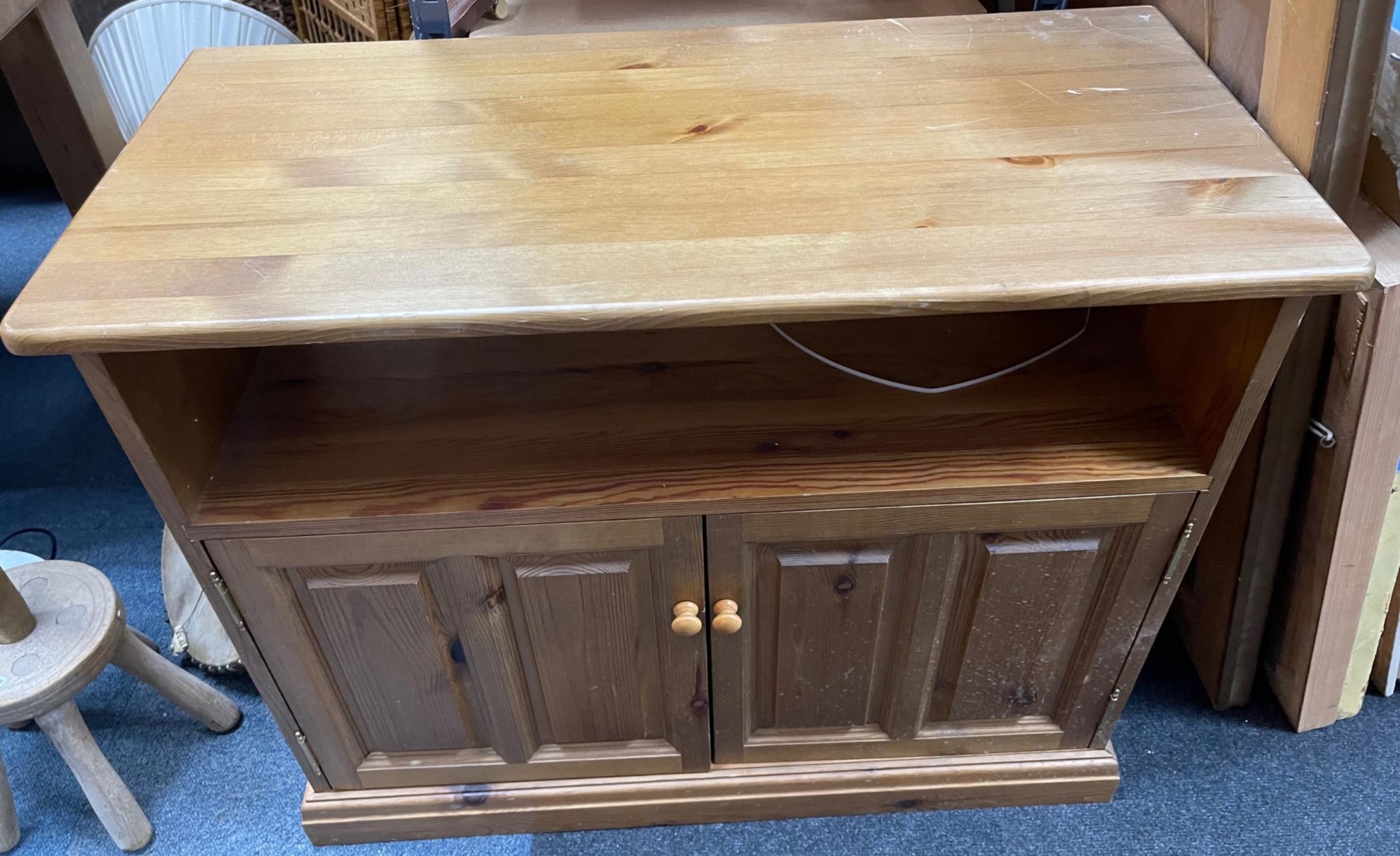 Give it a nice paint!! A solid pine media cabinet suitable for a tv, storage and sky box etc - dimensions 86cm width x 40cm depth x70cm height