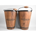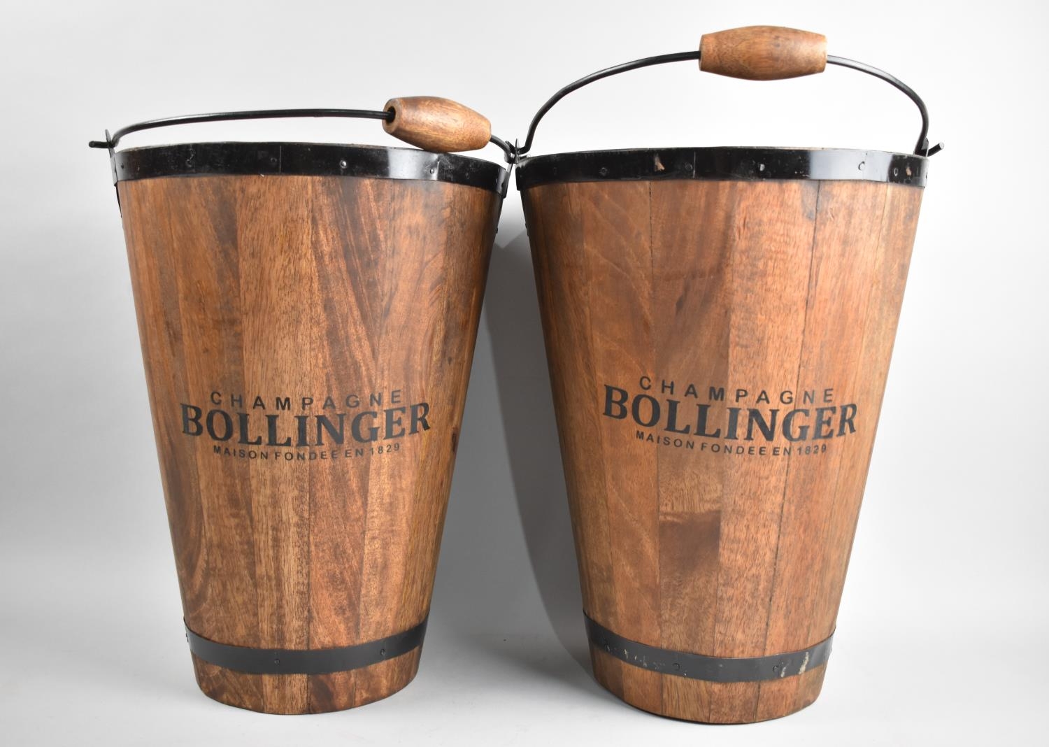 A Pair of Reproduction Wooden Coopered Bollinger Ice Buckets of Tapering Form, 40cms High