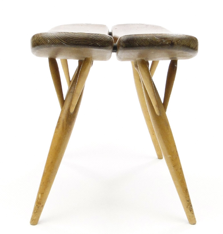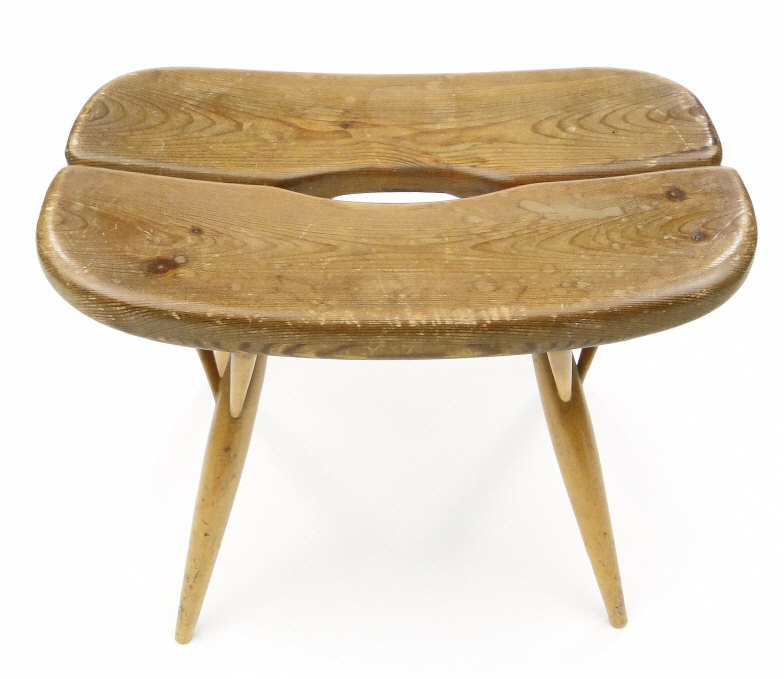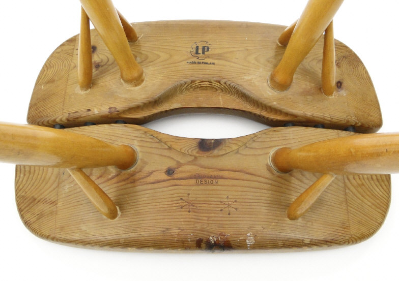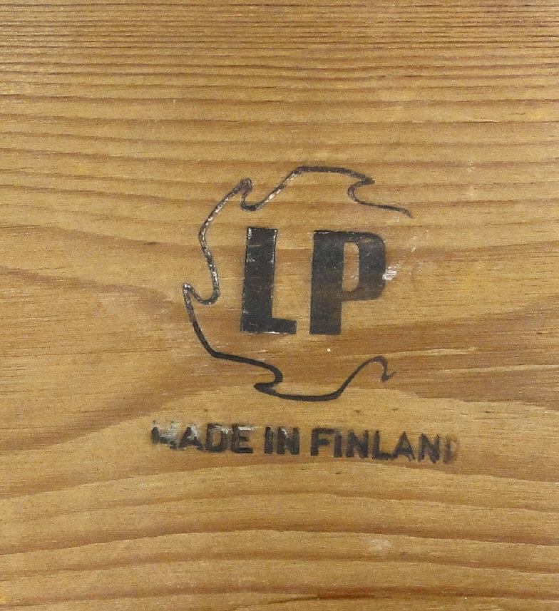 Pine stool designed by Tapio Vaara for LP of Finland, stamped marks to the underside, 31cm high x 43cm x 28cm wide