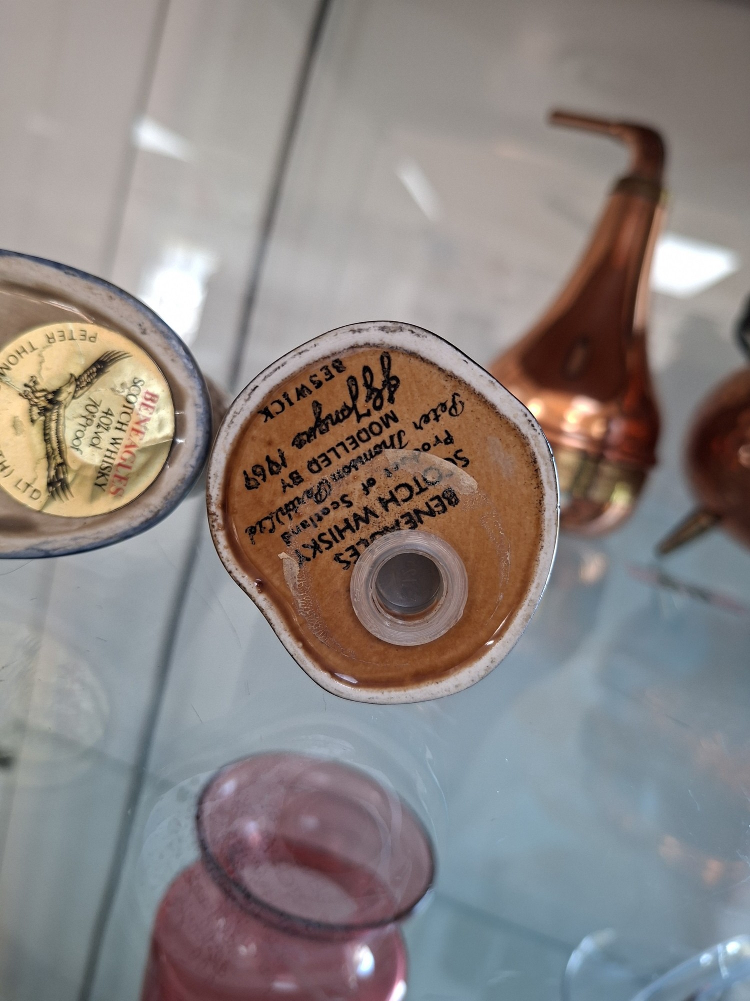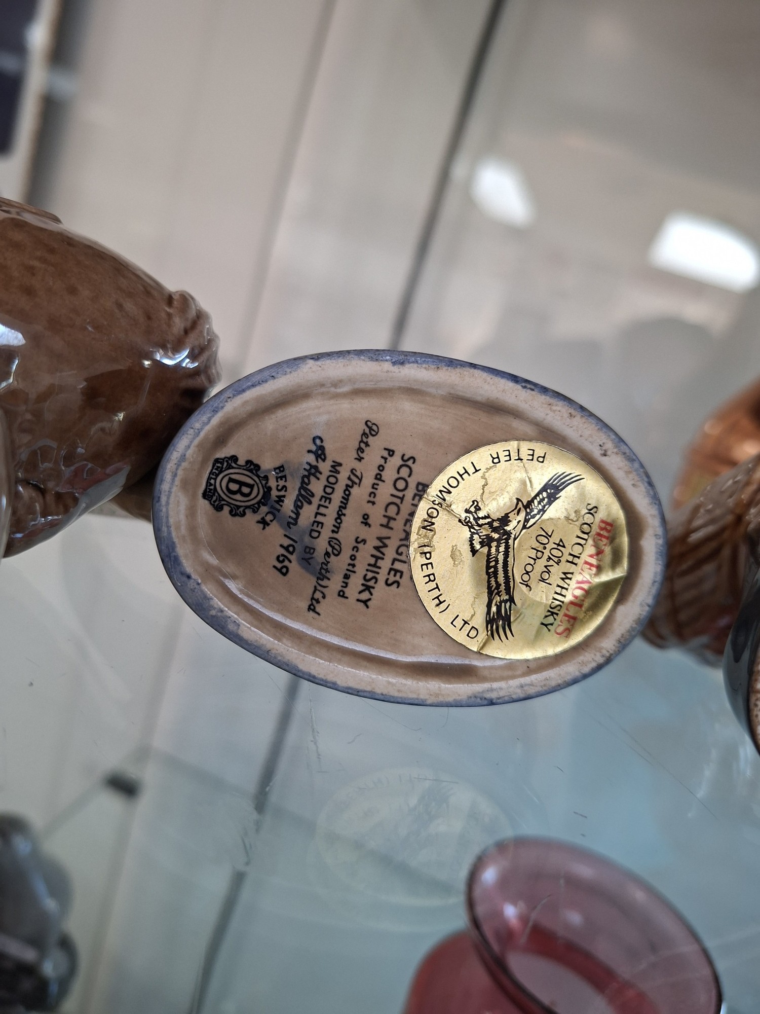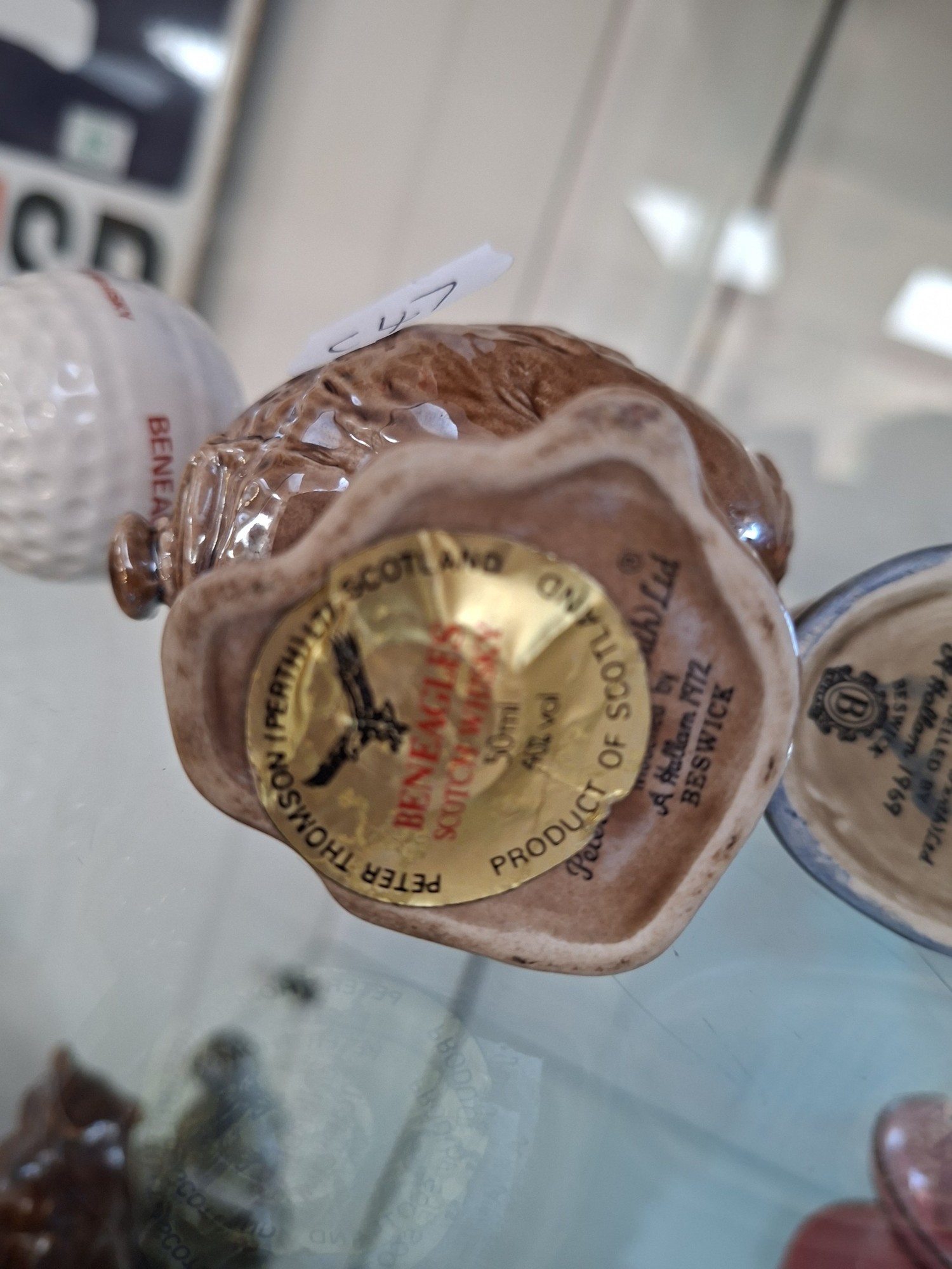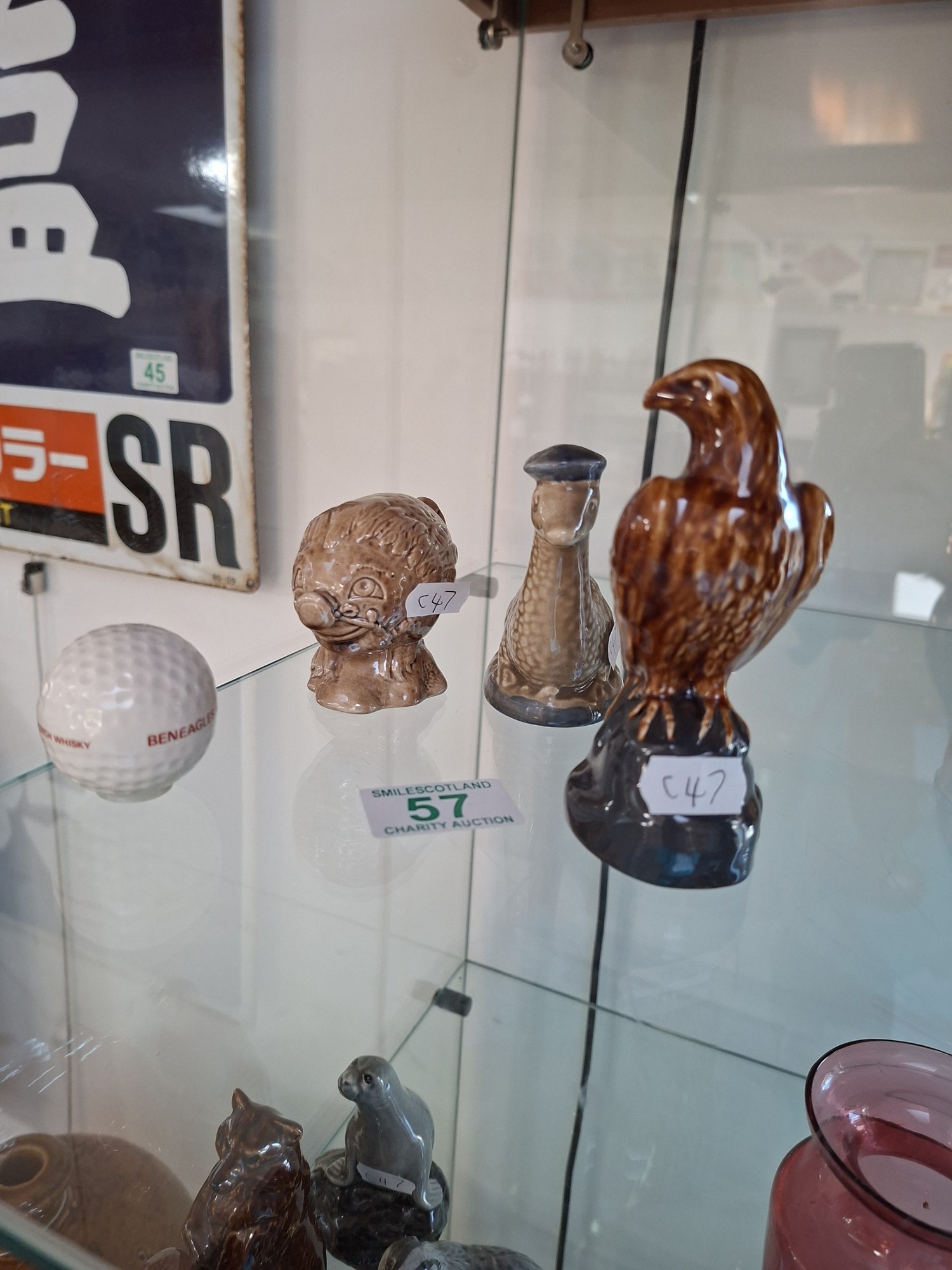 4 x Ben Eagles scotch whisky figurines 'Haggis 1972' & 'Nessie1969' full decanters plus 1969 eagle and golf ball