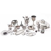 A pair of mid 20th century silver plated entree dishes lids and handles, not marked, (2)