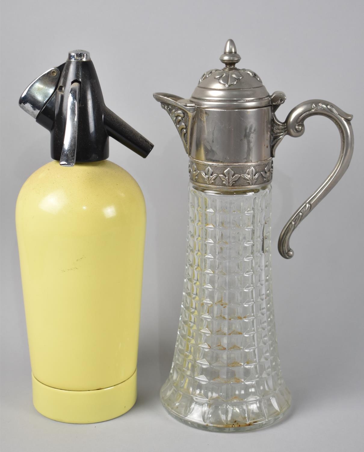 A Mid 20th Century Moulded Glass and Pewter Claret Jug and a 1960s Sparklet Soda Syphon