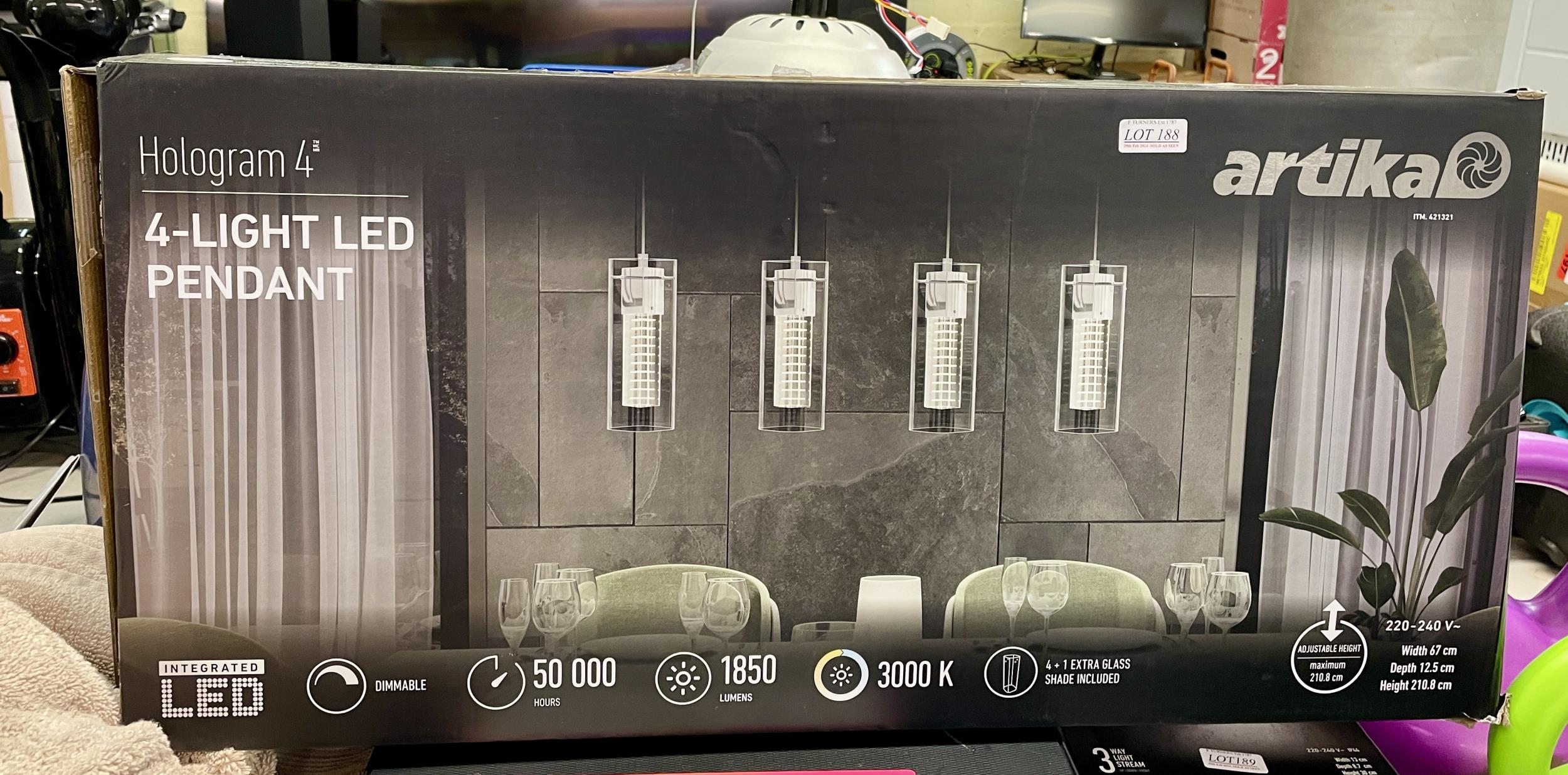 BOXED ARTIKA HOLOGRAM 4 4 LIGHT LED PENDANT