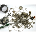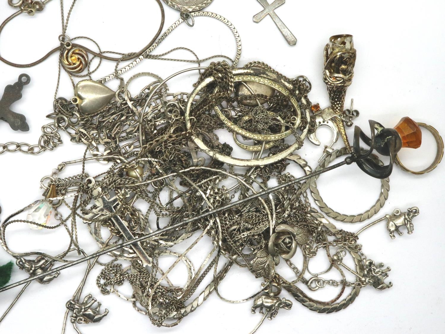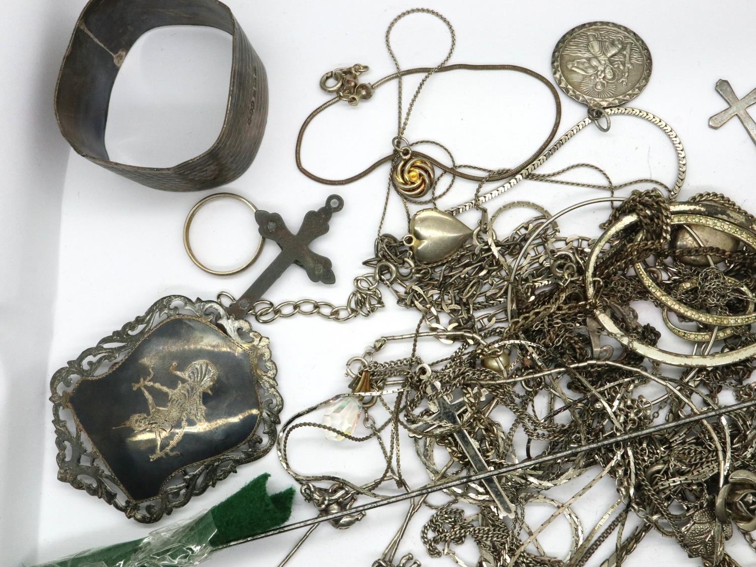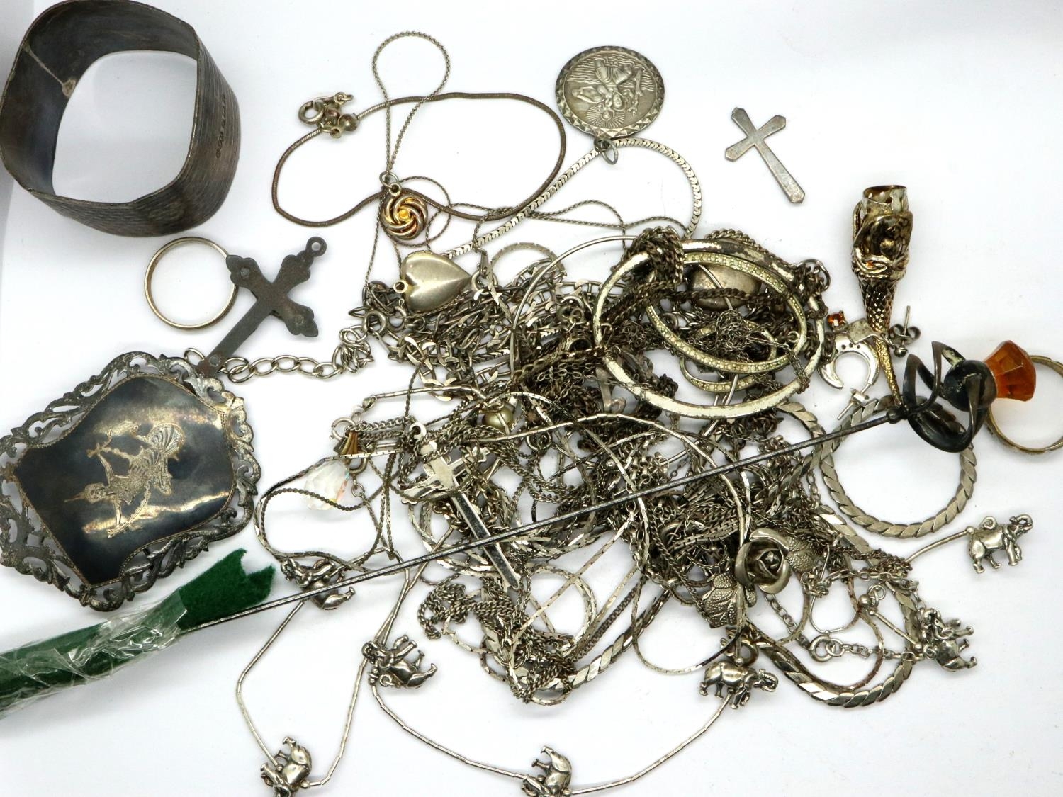 Mixed silver and white metal jewellery to include a hat pin and silver napkin ring, 198g. P&P Group 1 (£14+VAT for the first lot and £1+VAT for subsequent lots)