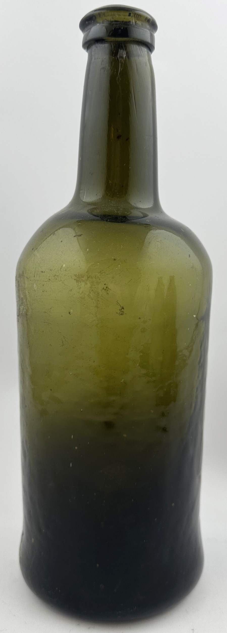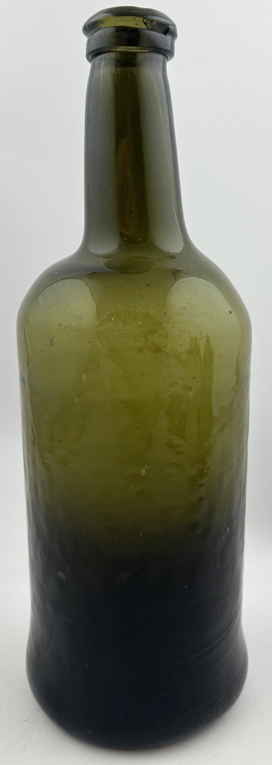 WINE BOTTLE. 10.25ins tall. Base pontil. Inner lip nicks, surface scratches, repair ?