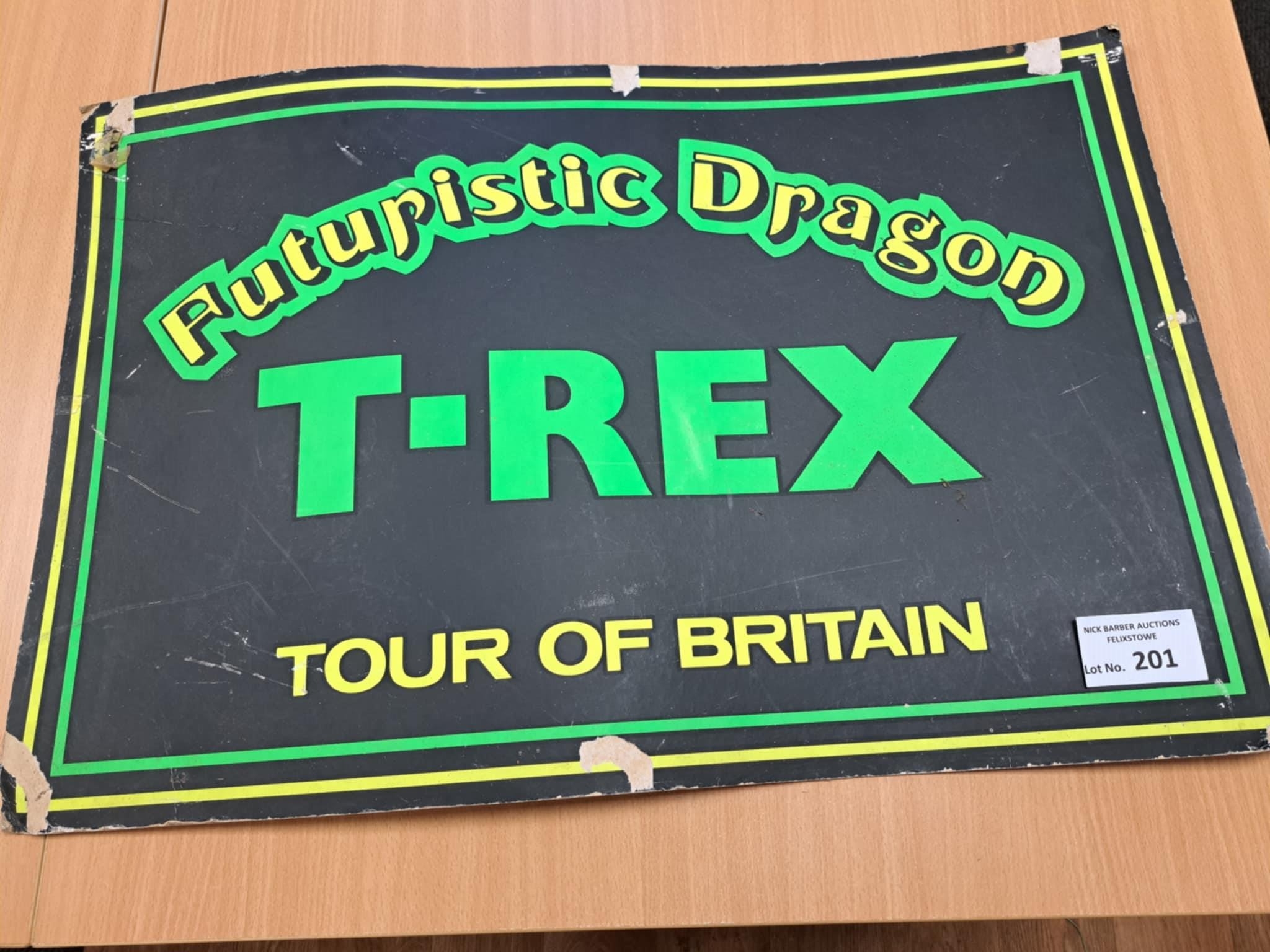Records; Music Memorabilia: T Rex Futuristic Dragon Tour of Britain advertising board; some damage to edges/curving, tears where it had been taped; 50x75cm.