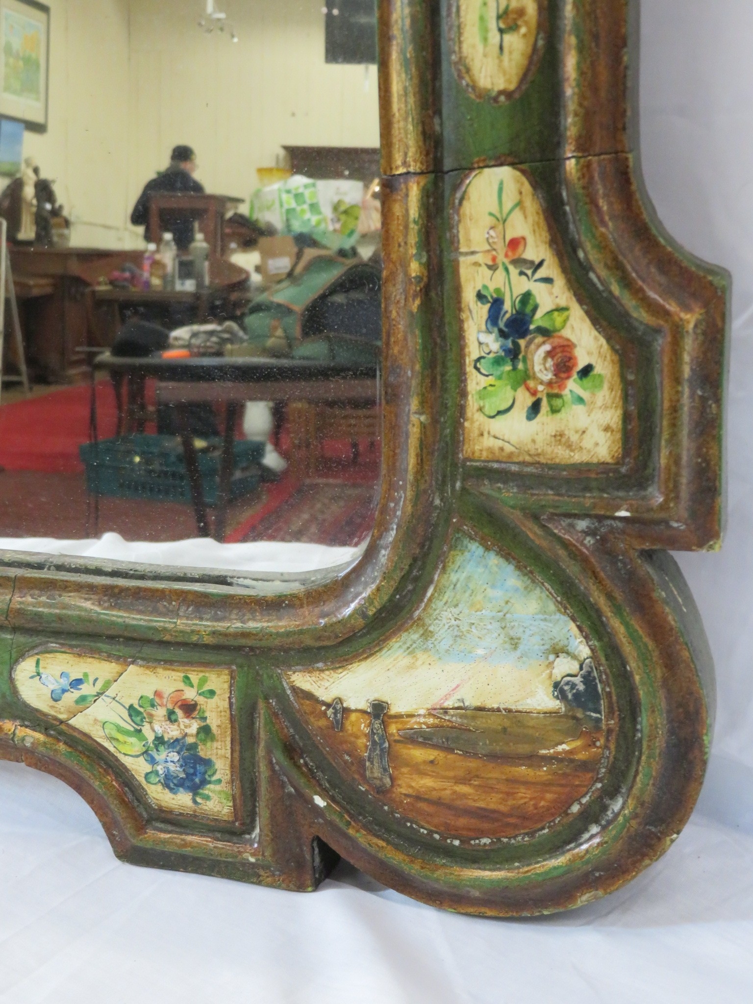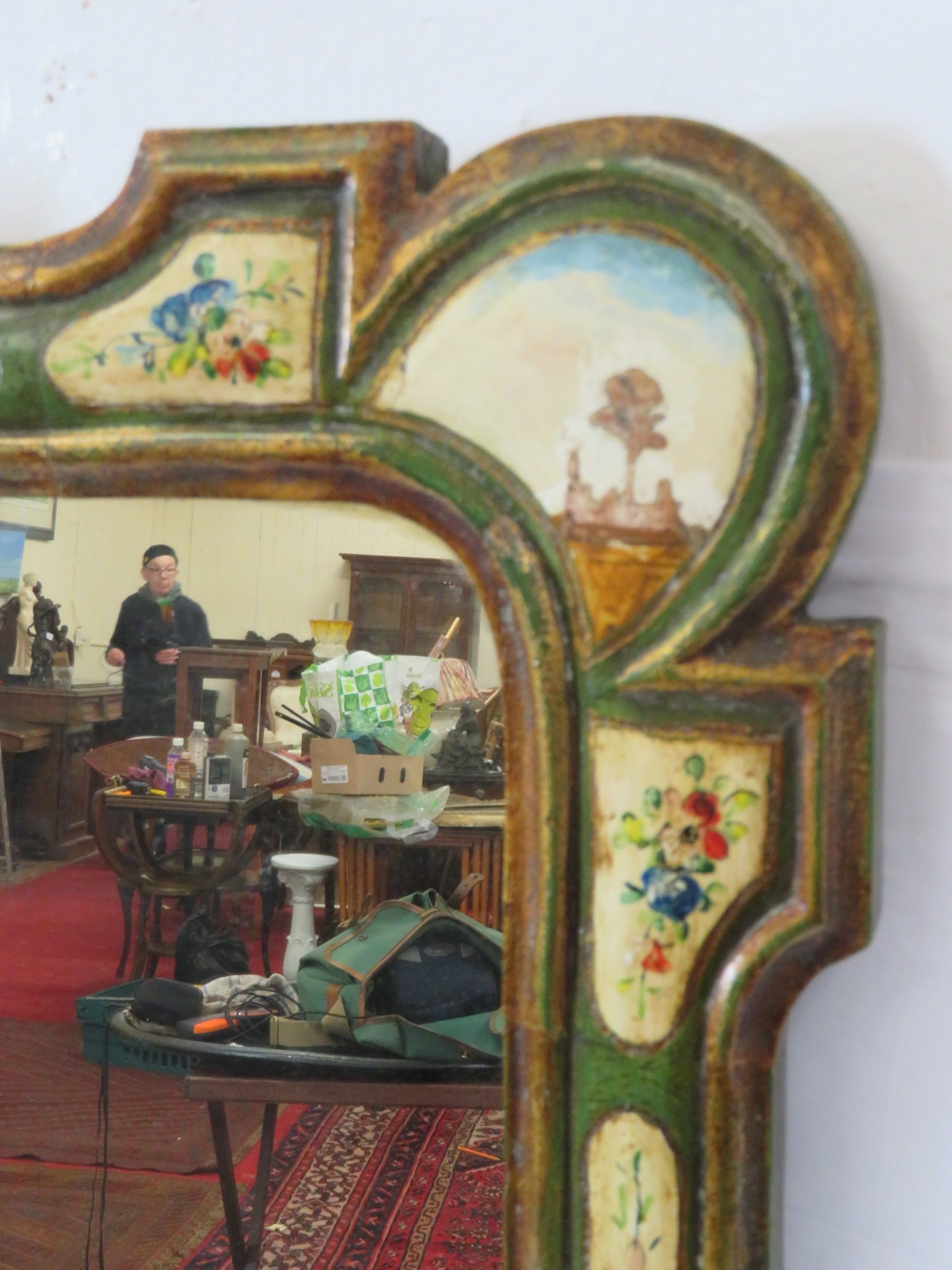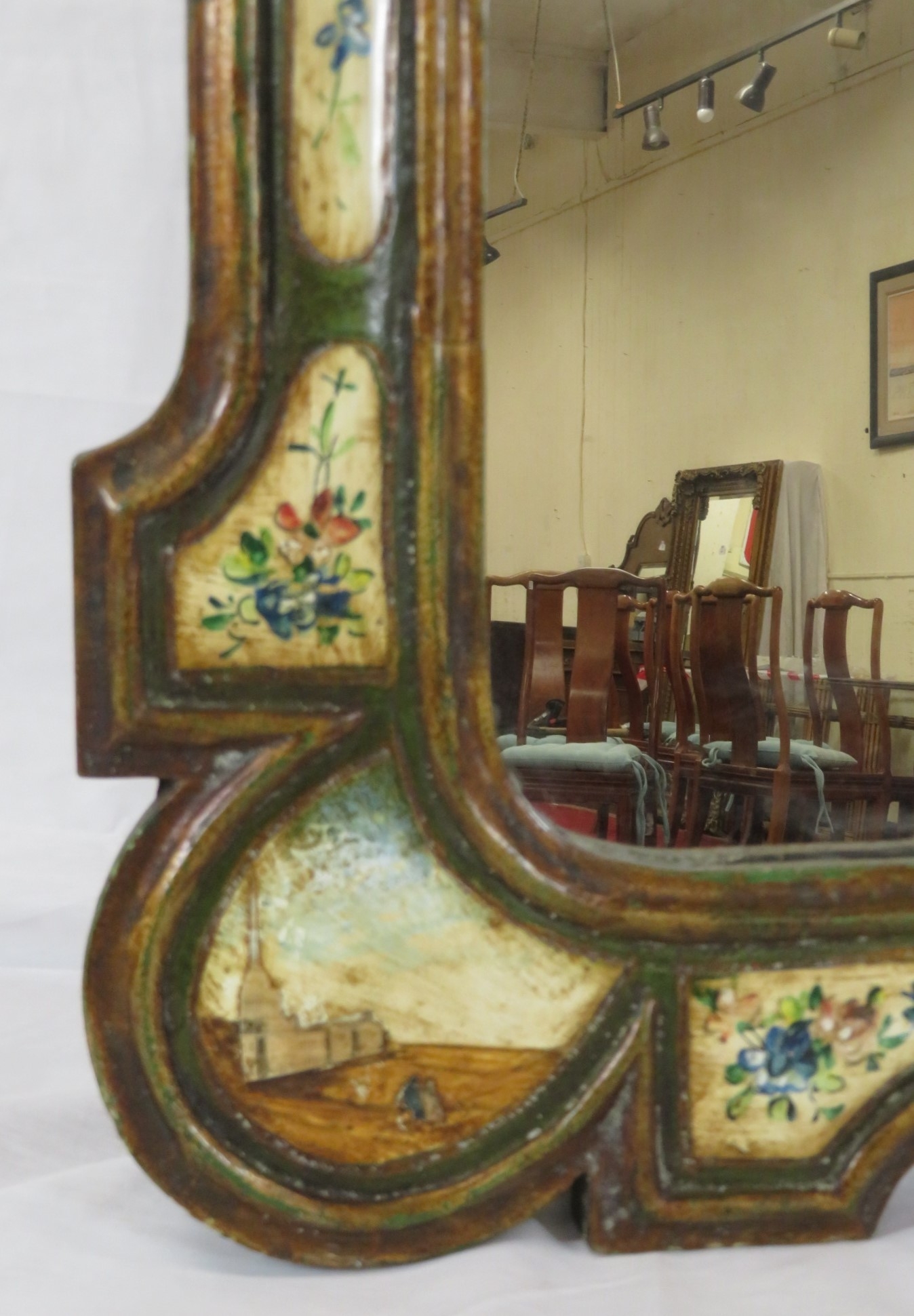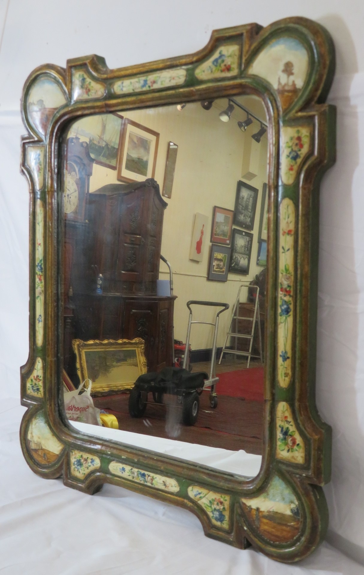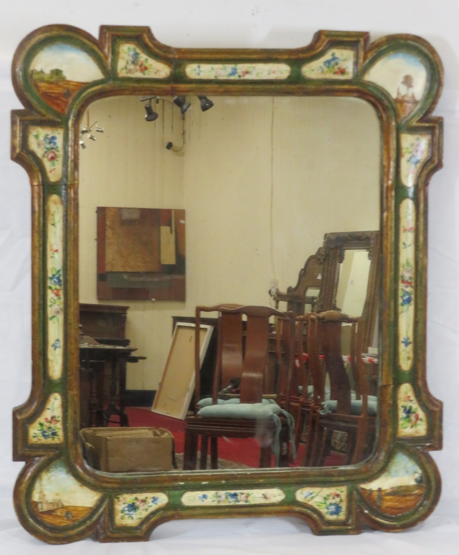 Italian hand painted decorative wall mirror with foliate decoration