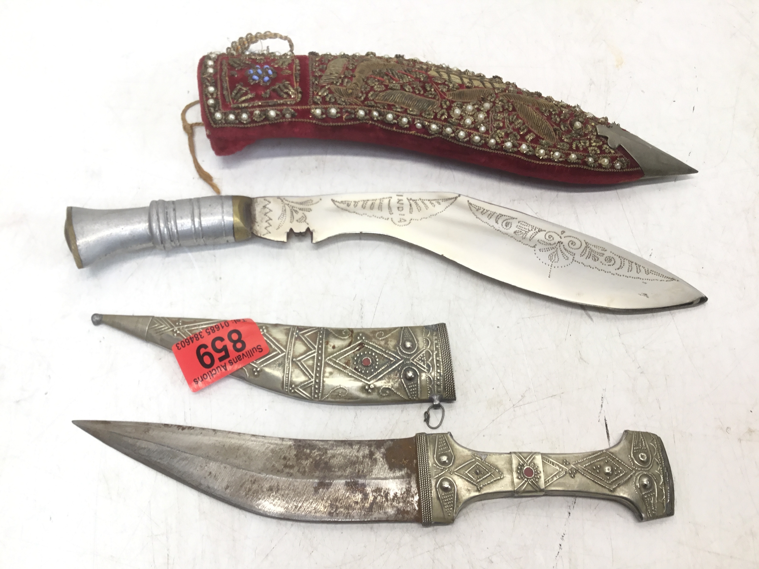 Two decorative Indian Kukri knives. Strictly over 21 only, ID must match registered address. Collection only no shipping,