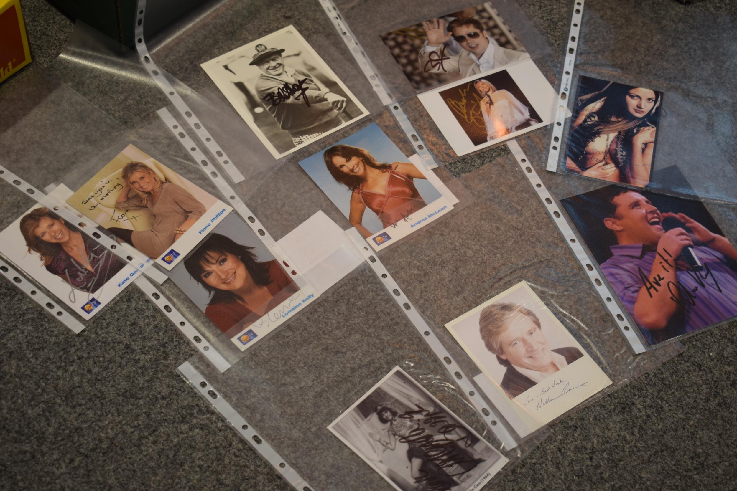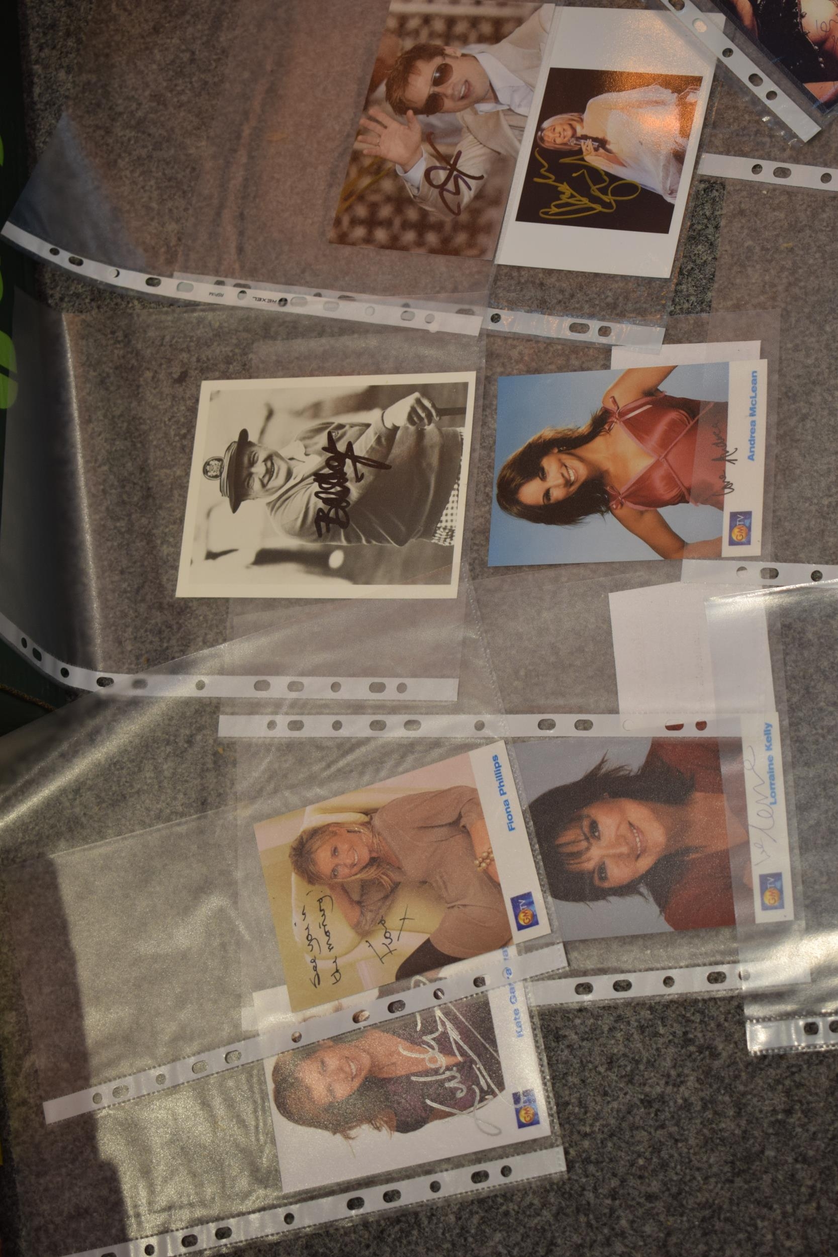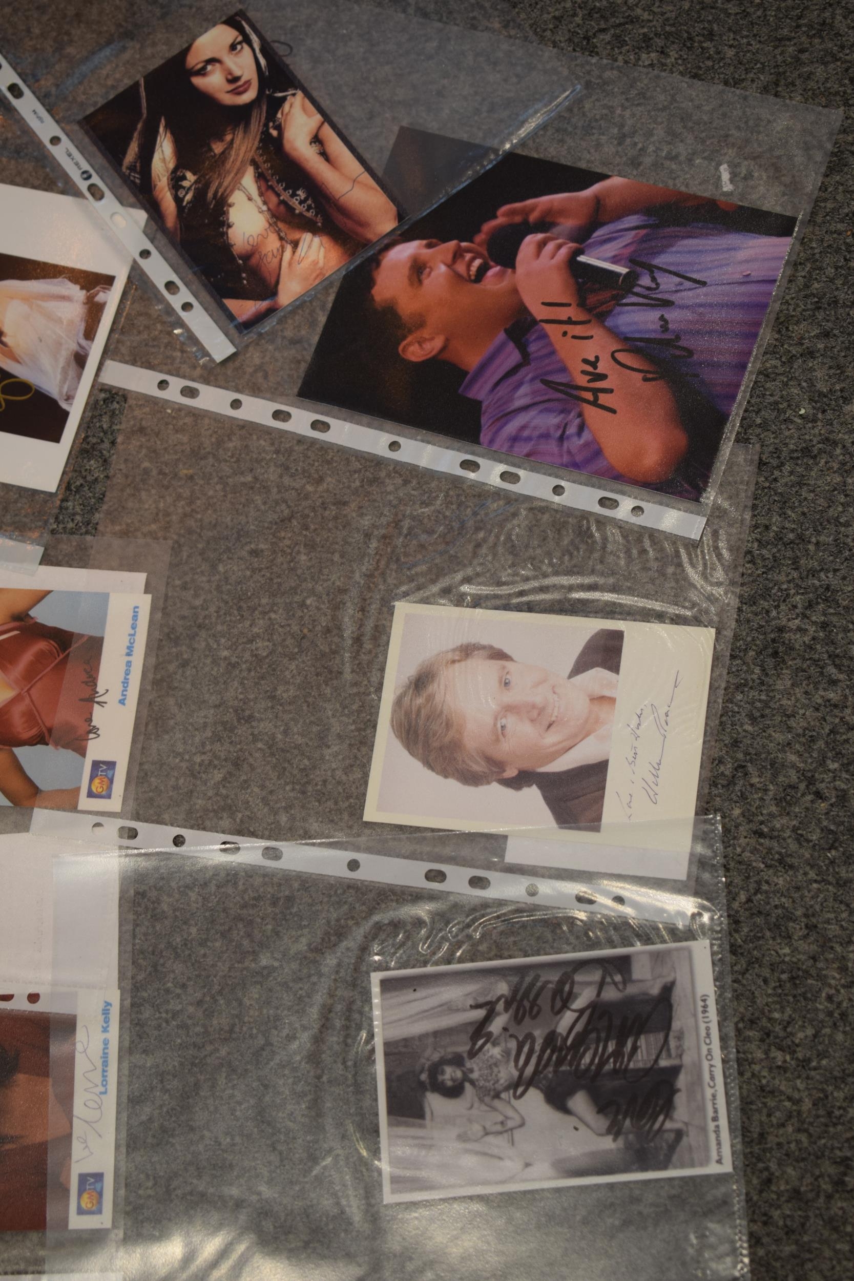 A collection of autographs and facsimiles on studio photographs, some with printed certificates, to include famous names such as, Peter Kay, Andrea McLean, (10)