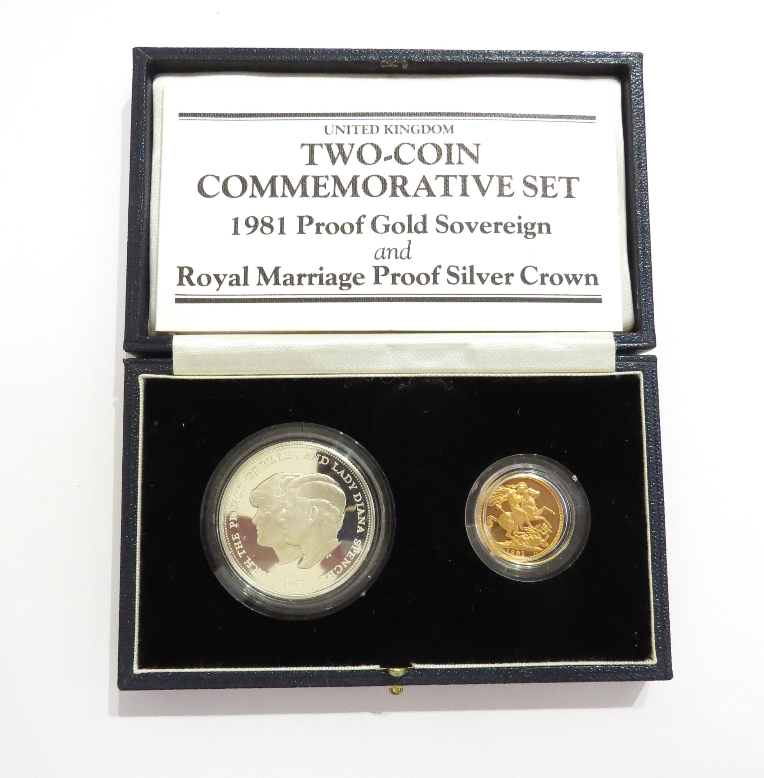 1981 proof gold sovereign and Royal Marriage Proof silver Crown two-coin commemorative set, boxed