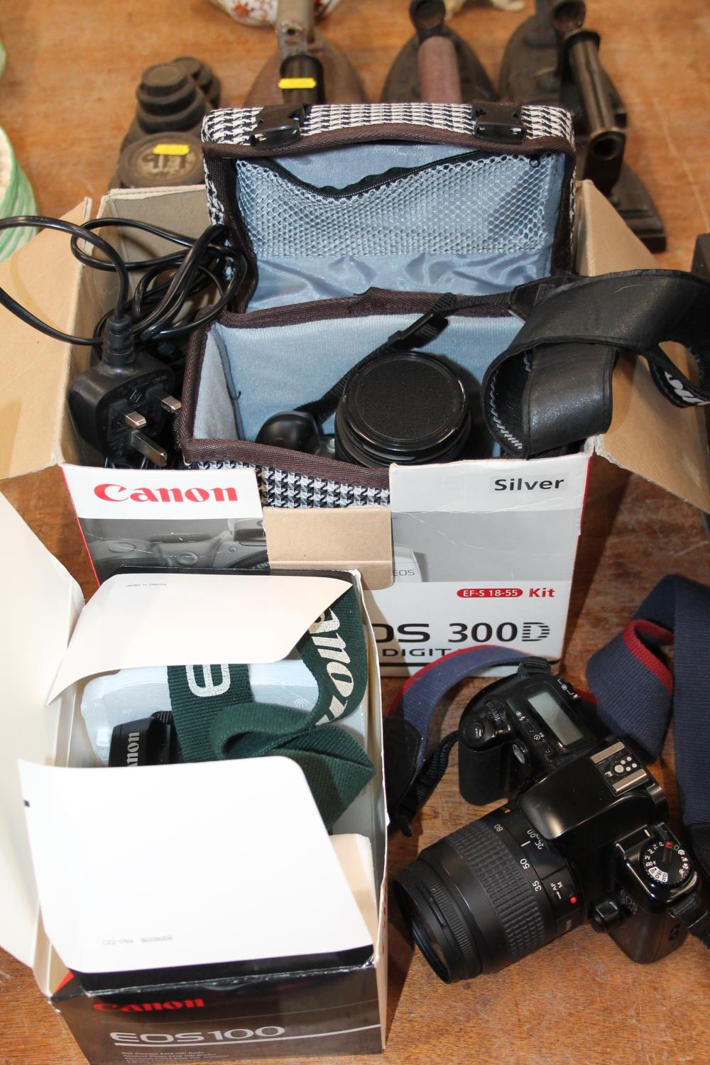 Three cameras to include Canon EOS 500, Canon EOS, and Canon EOS 100.