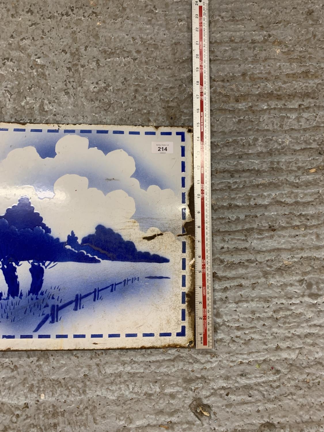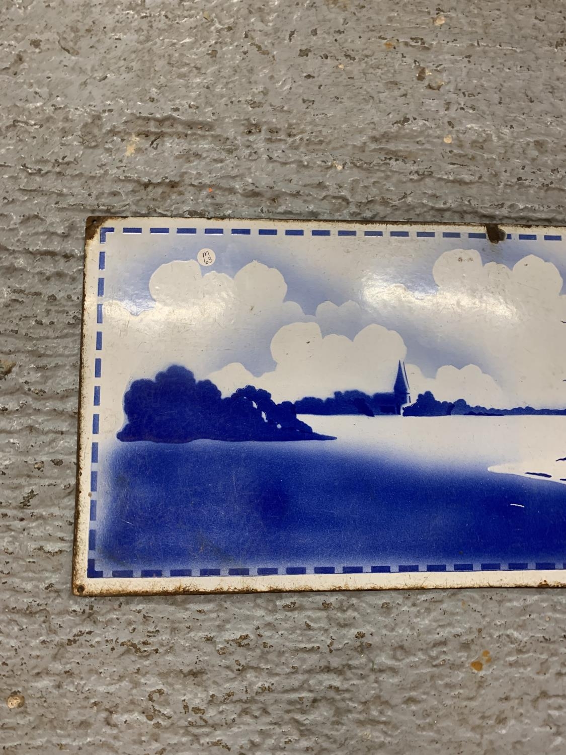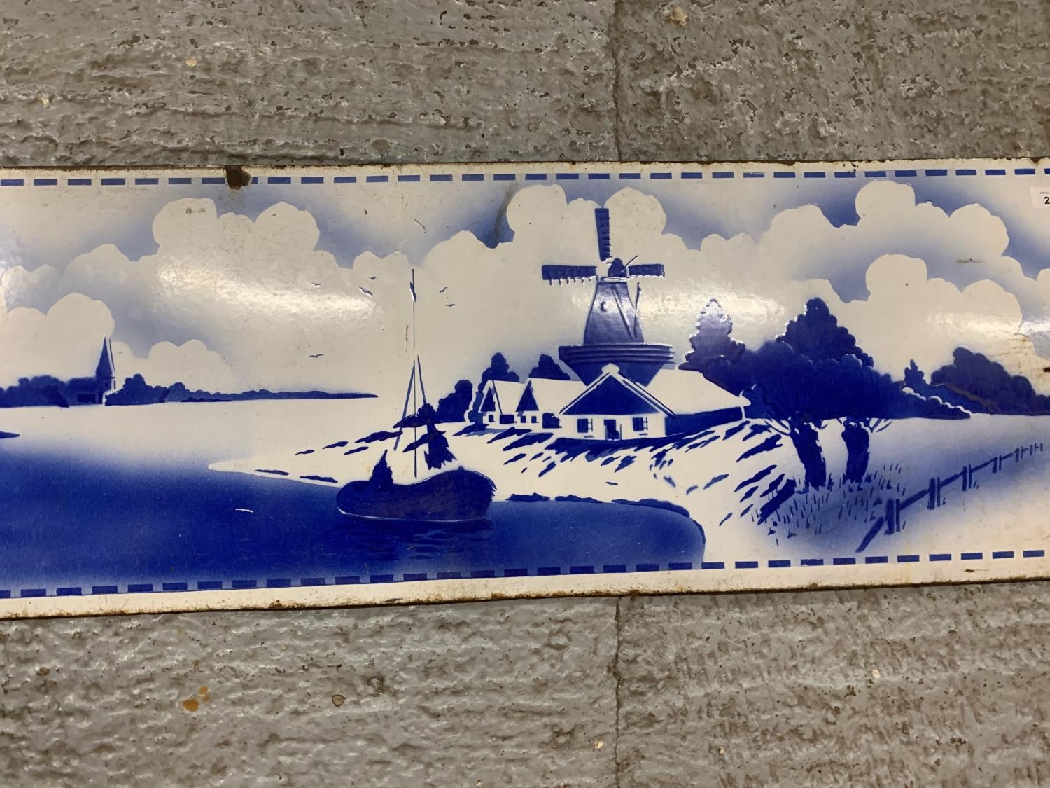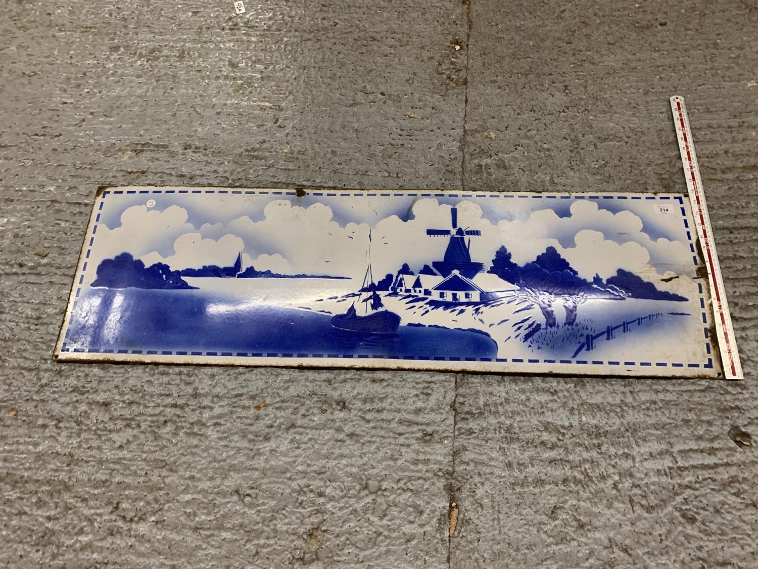 A VINTAGE ENAMEL SIGN DEPICTING A DUTCH WINDMILL SCENE 48 INCHES X 15 INCHES