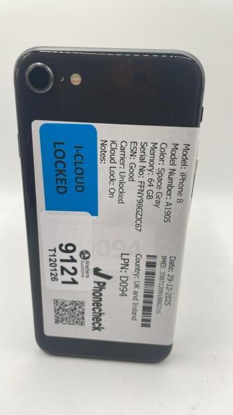 APPLE IPHONE 8 / A1905 / 64GB / IMEI: 358712091886216 / I-CLOUD LOCKED