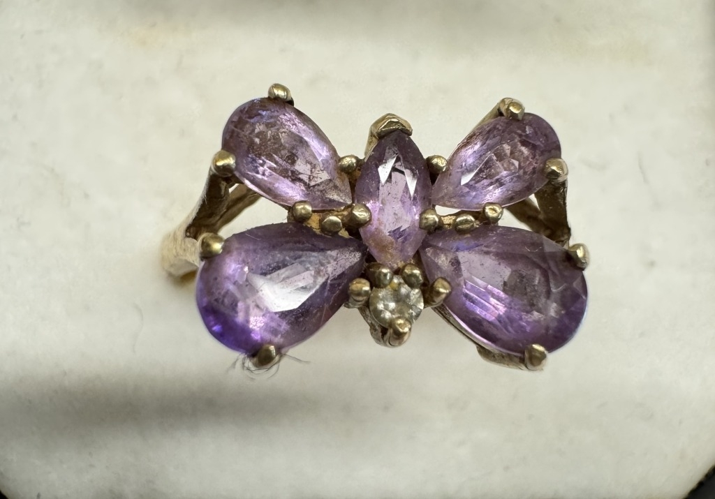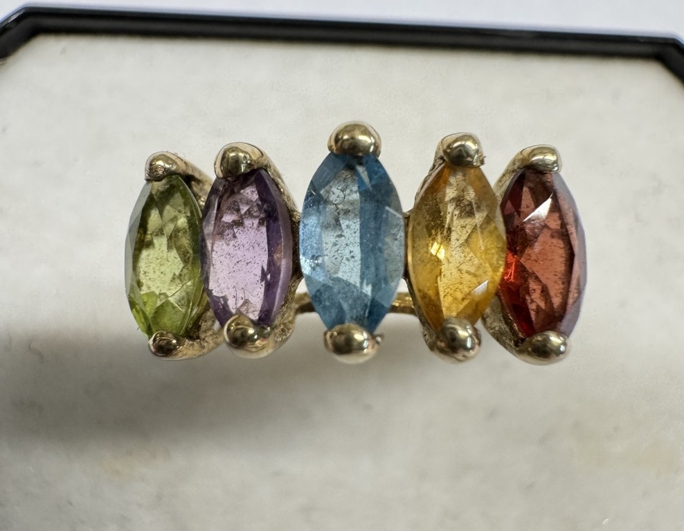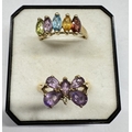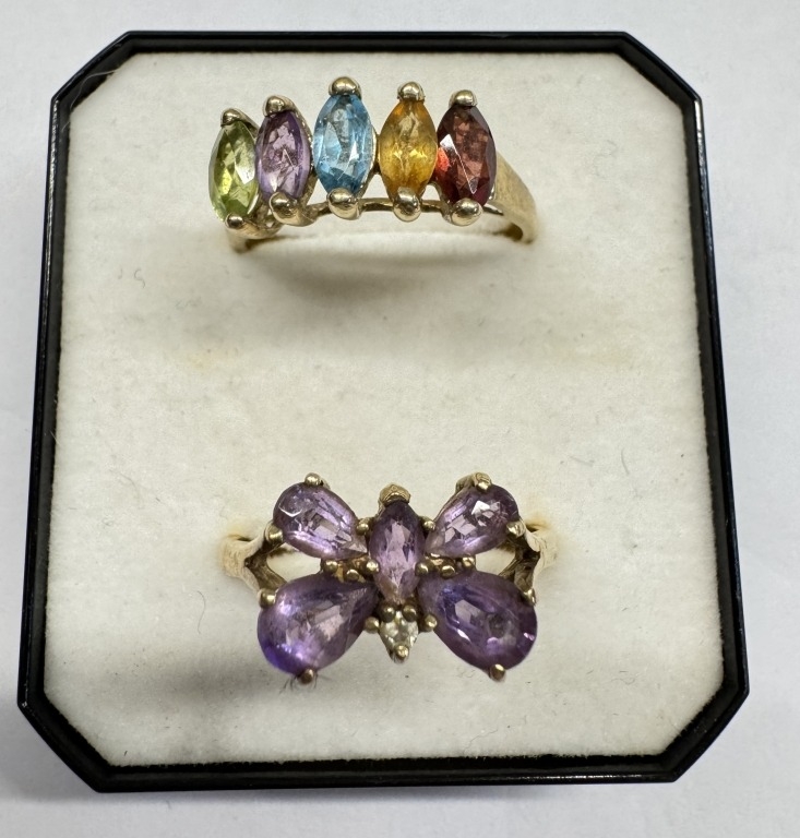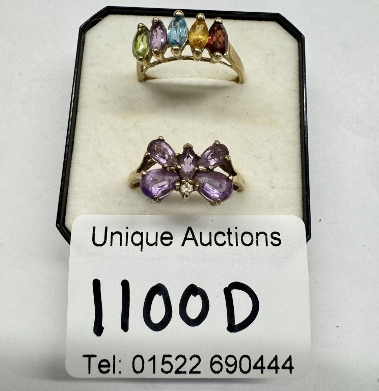 2 9ct gold rings set coloured stones. Size N, 4.44 grams