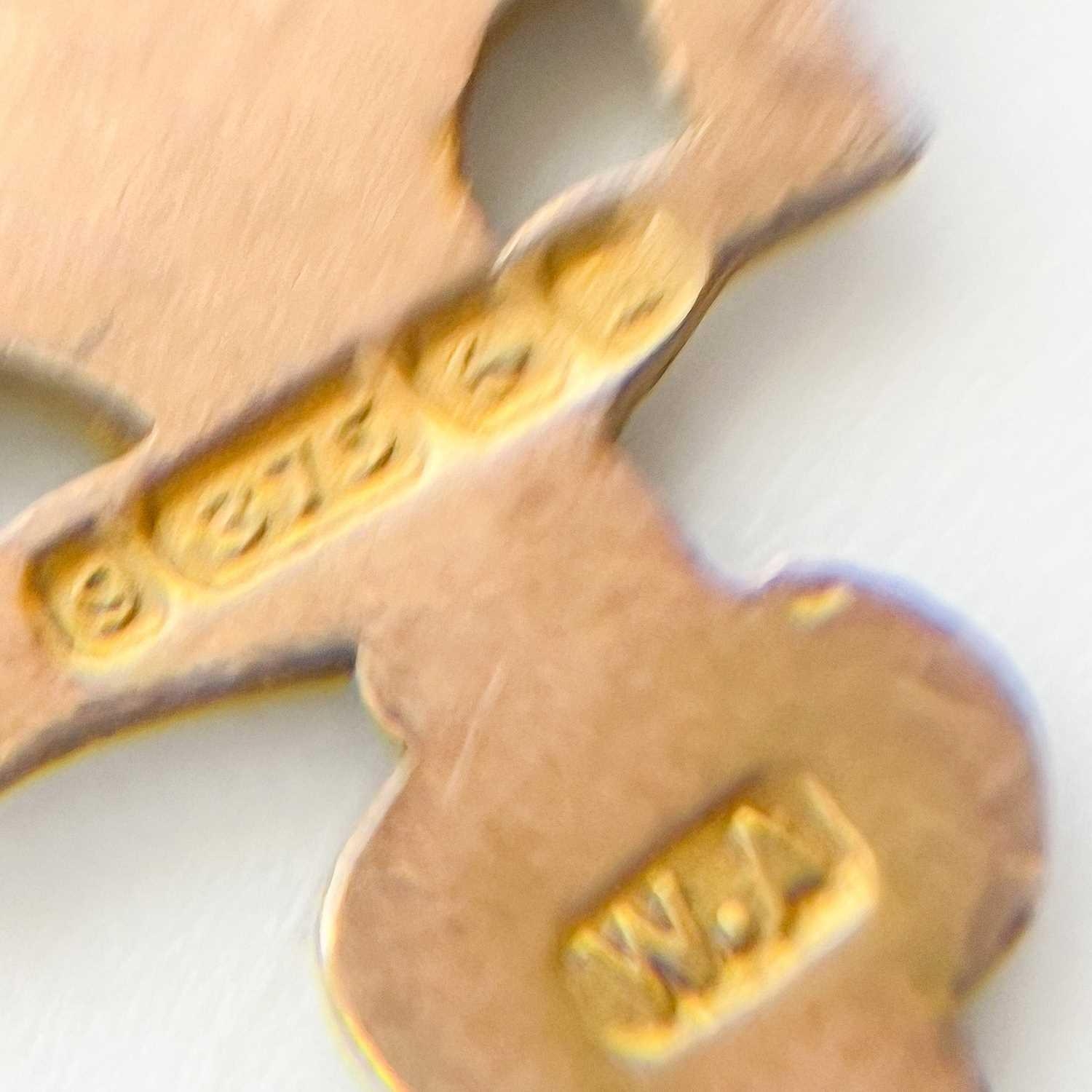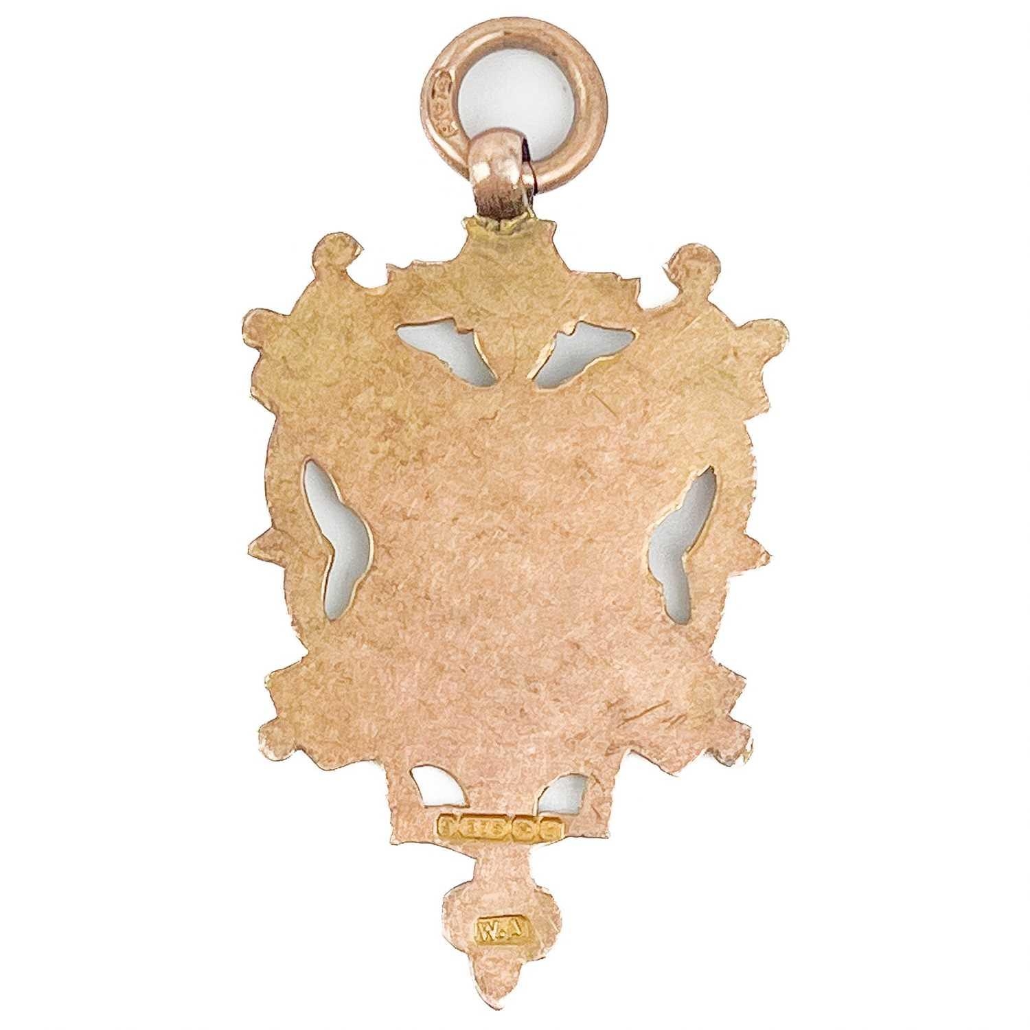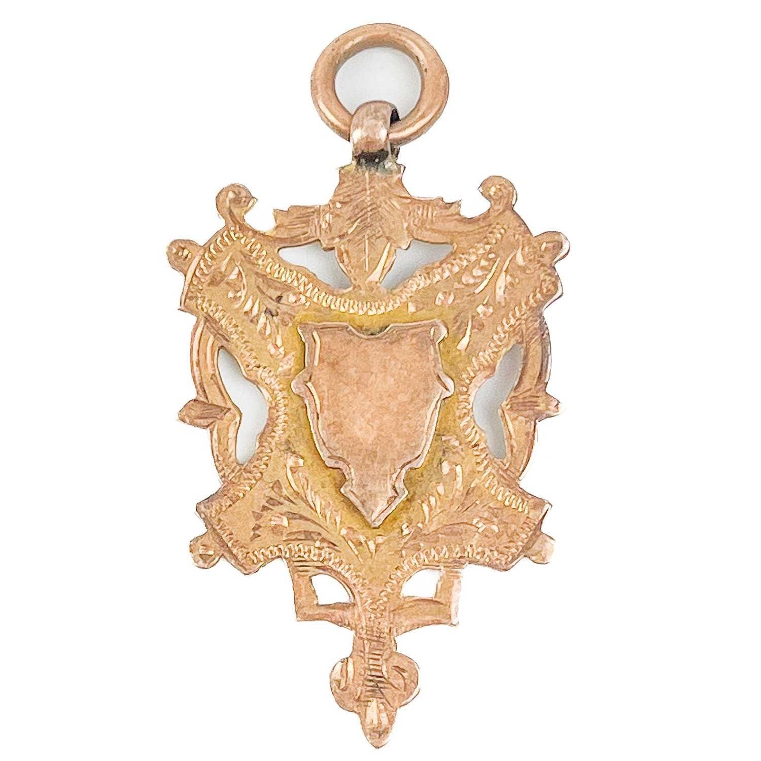A 9ct hallmarked gold shield fob. Birmingham 1907, 4.6g.