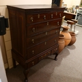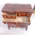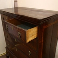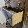 Veneer splits to the side panels and several minor veneer chips, replacement handles, pine drawer linings