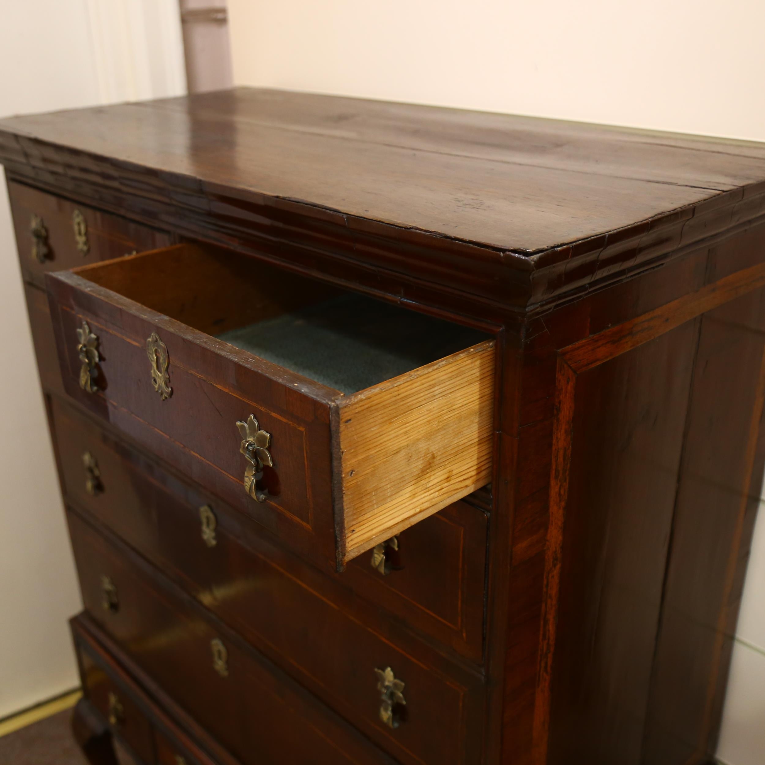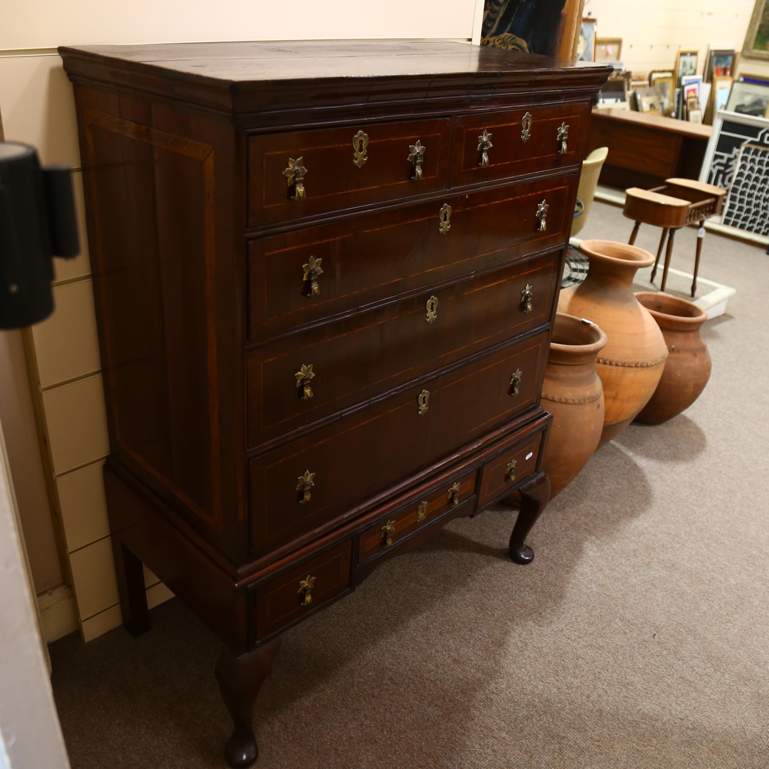 A George III walnut chest on stand raised on cabriole legs, width 94cm, height 127cm