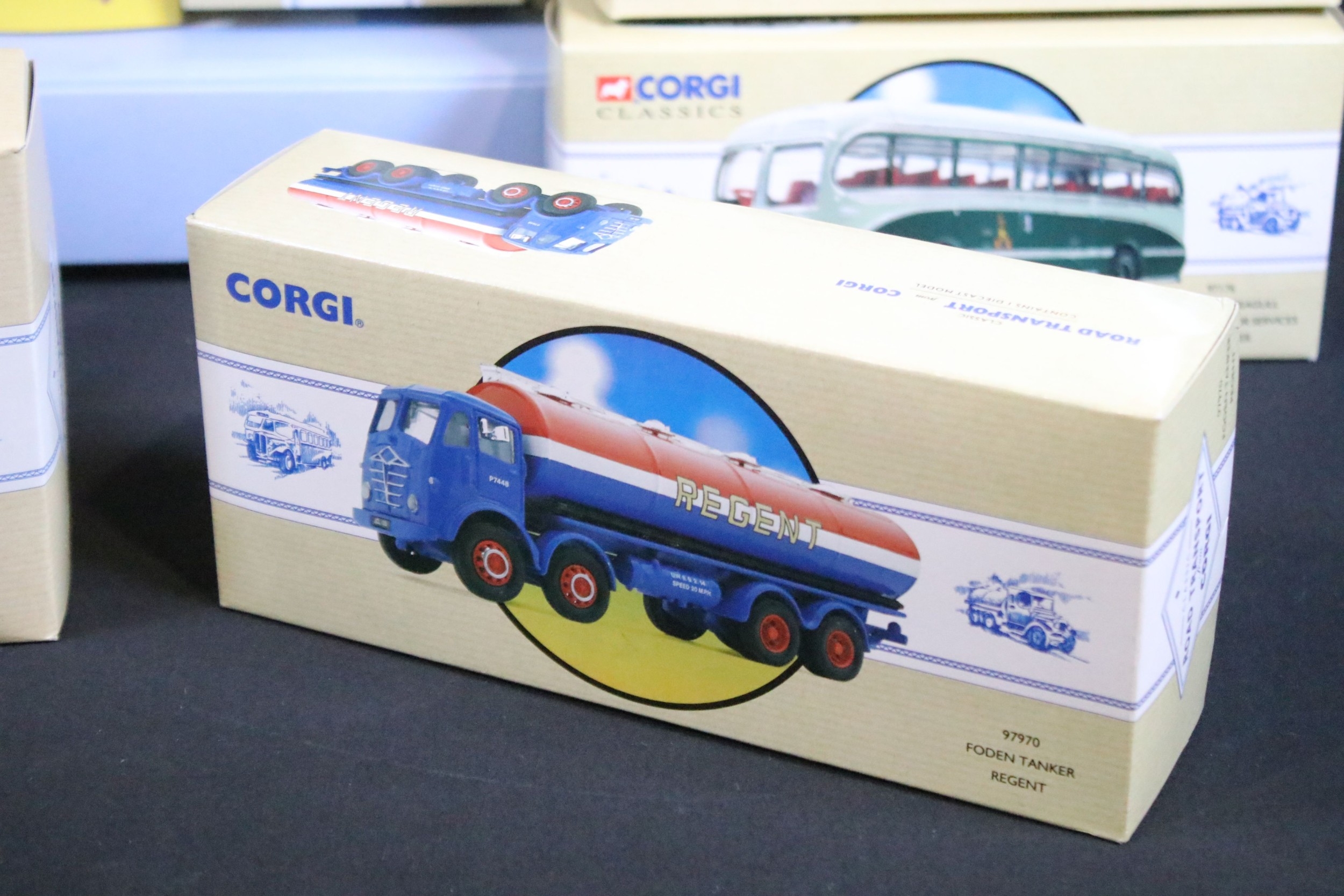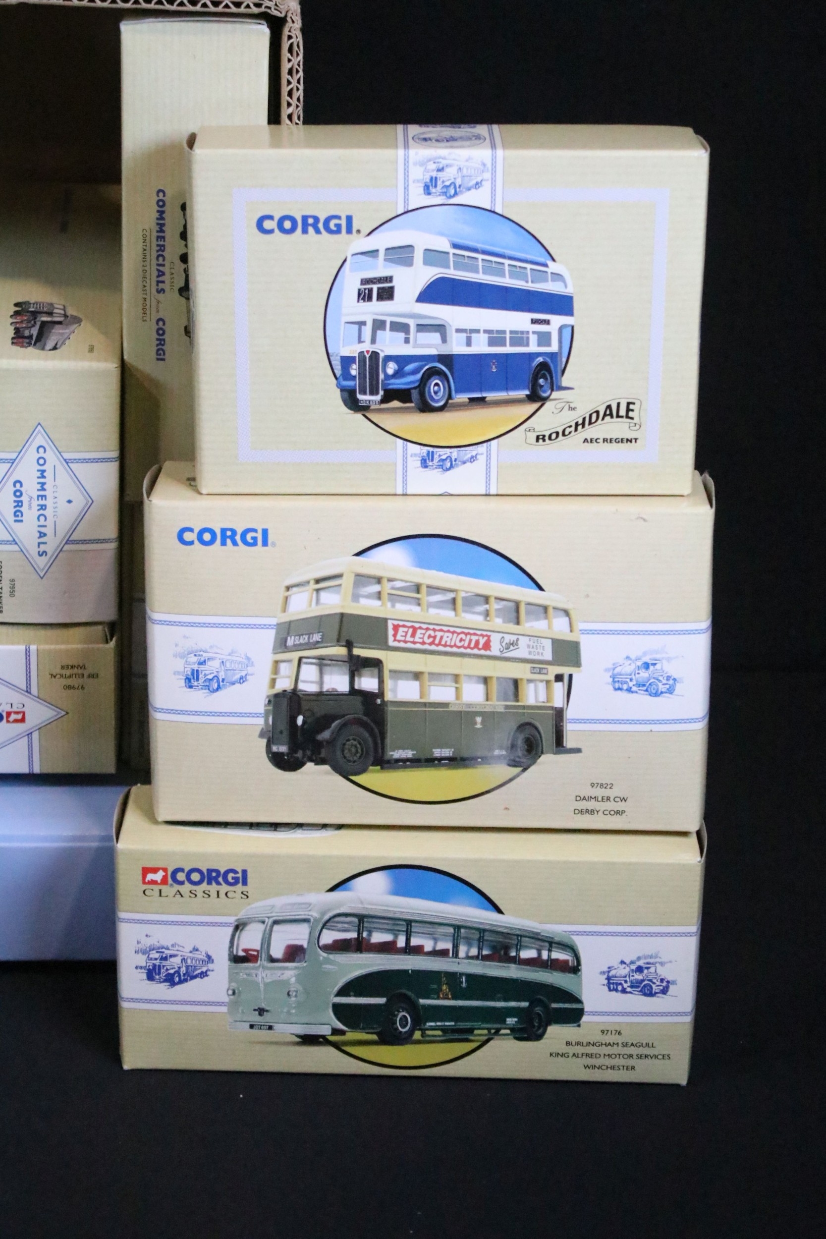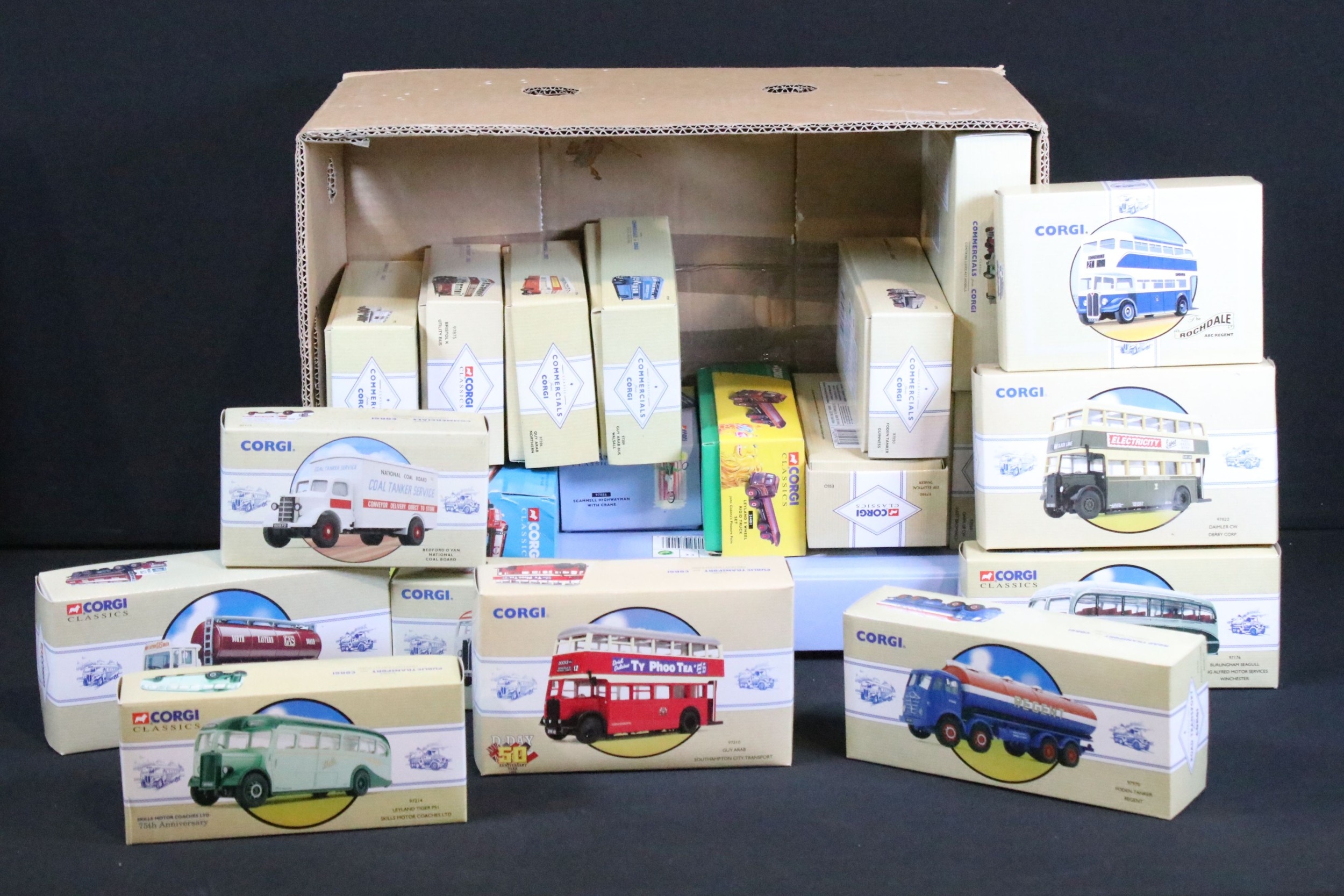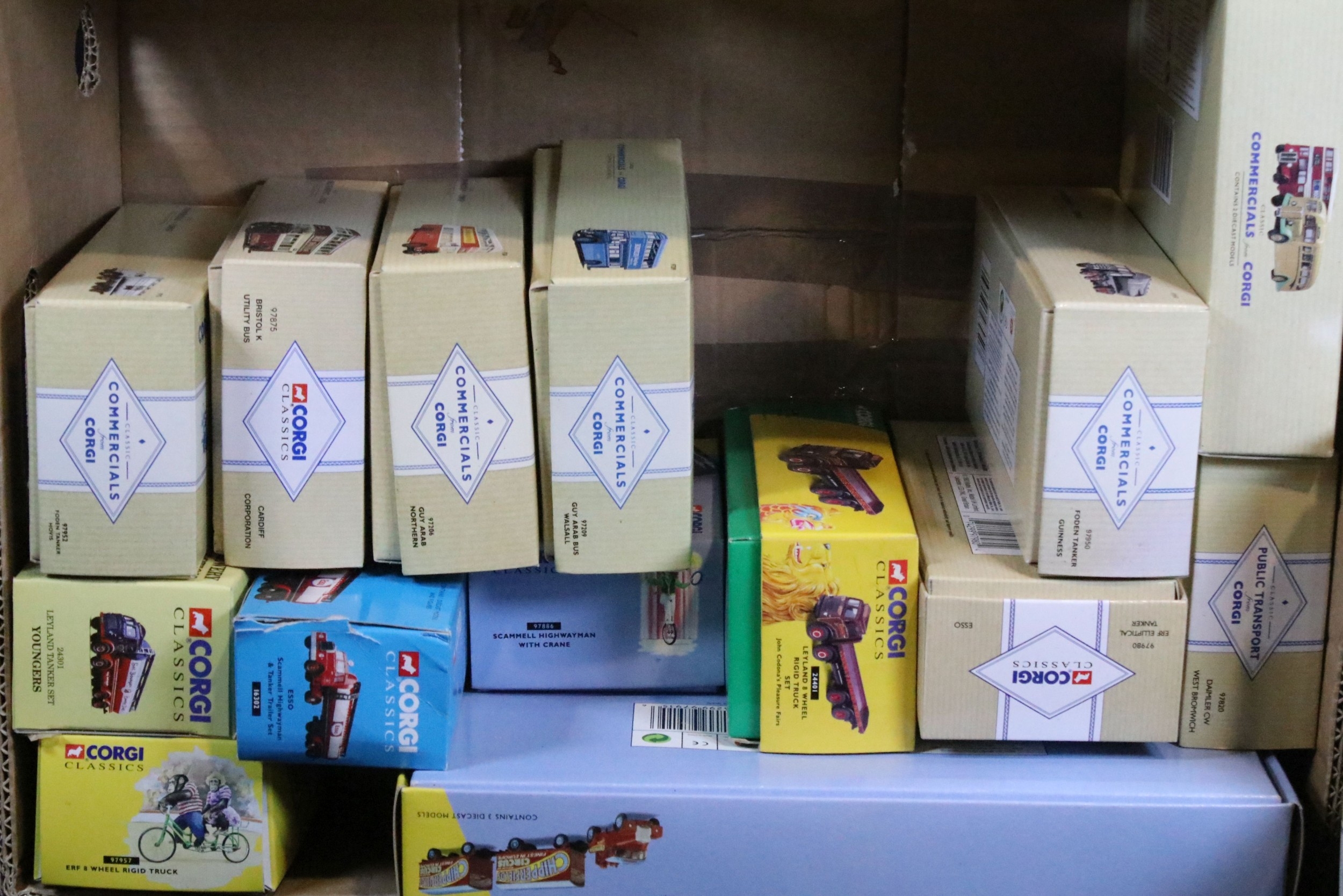 27 Boxed Corgi Classics diecast models to include Commercials, Road Transport and Public Transport examples featuring 97915 Scammell Highwayman With 2 Trailers Chipperfield Circus, 97206 Guy Arab Northern, 97970 Foden Tanker Regent, 97176 Burlingham Seagull, 97952 Foden Tanker Hovis, etc, all ex