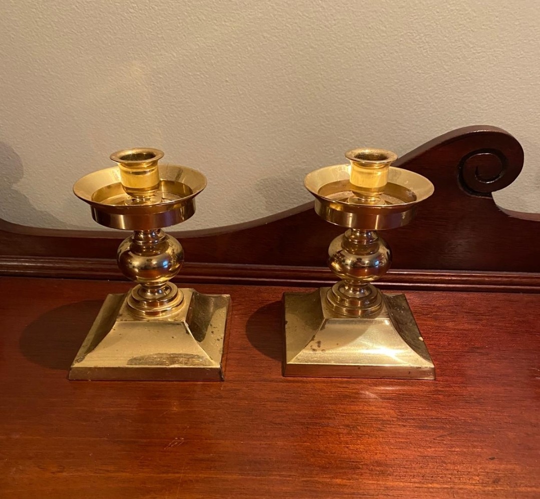 Pair of Waterford Crystal brass candlestick holders.