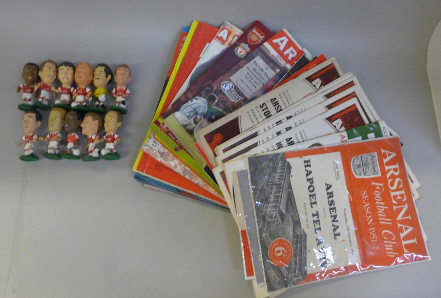 Football programmes; Arsenal home and away, 1951 onwards (1951 x1, 1960's x2) and plastic Arsenal football players
