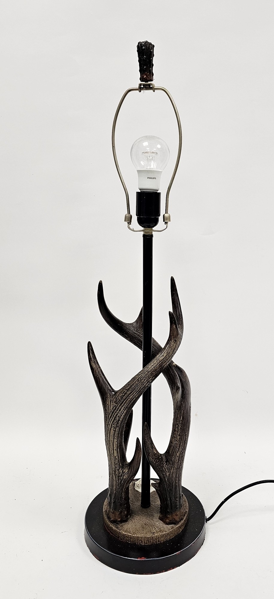 Modern table lamp in the form of two entwined stag horns on a circular base with black finish, 60cm high