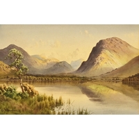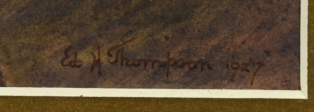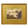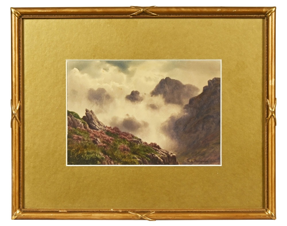 Edward Horace Thompson (1879-1949), watercolour "Lakeland Fells in Cloud with Blooming Heather", signed and dated 1927. 15 x 22.5 cm, framed and mounted (see illustration).