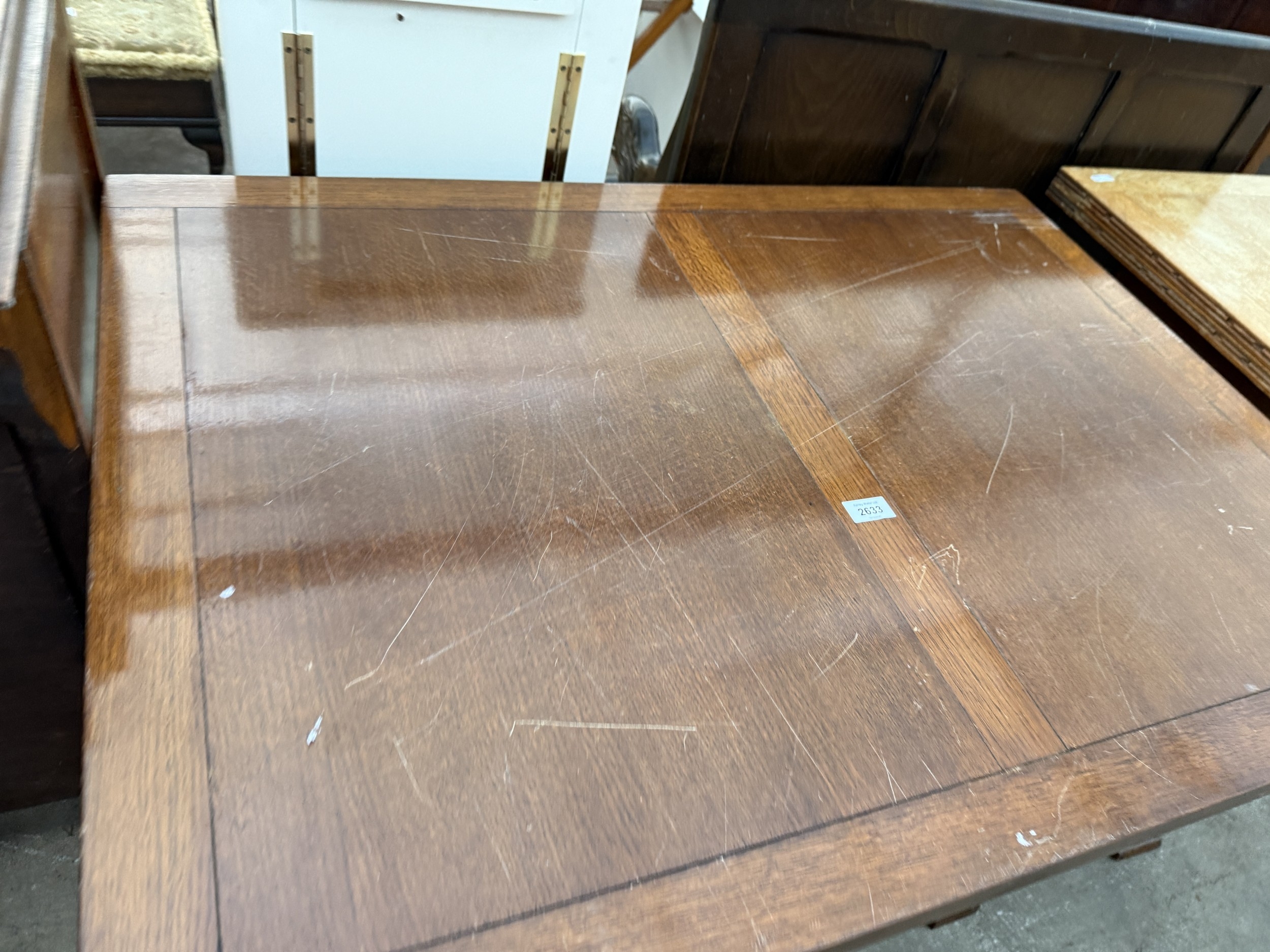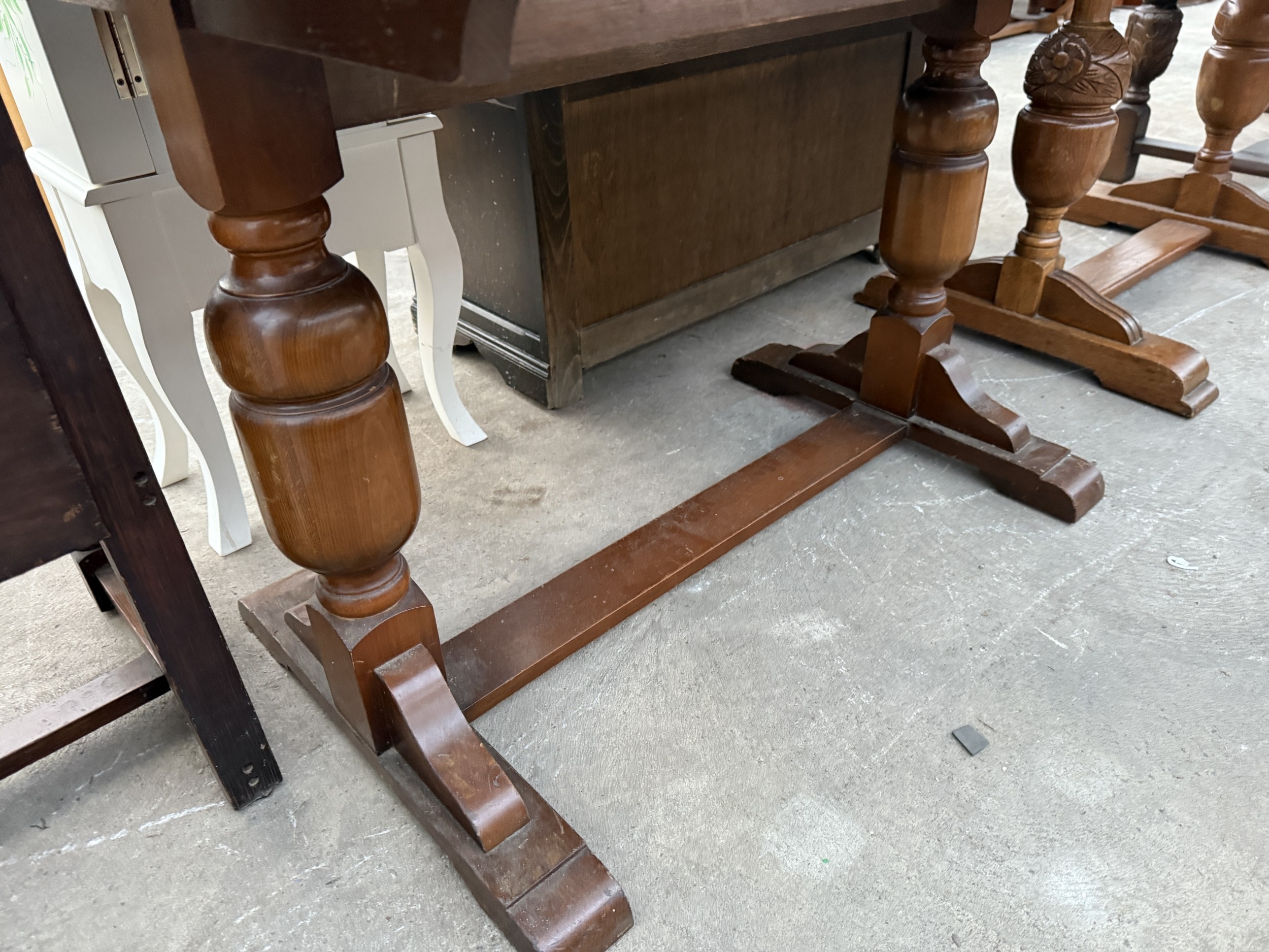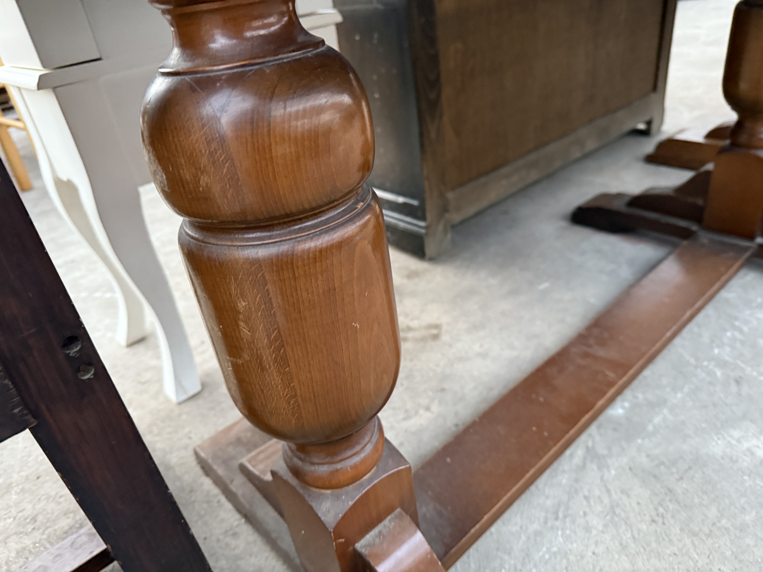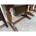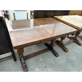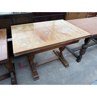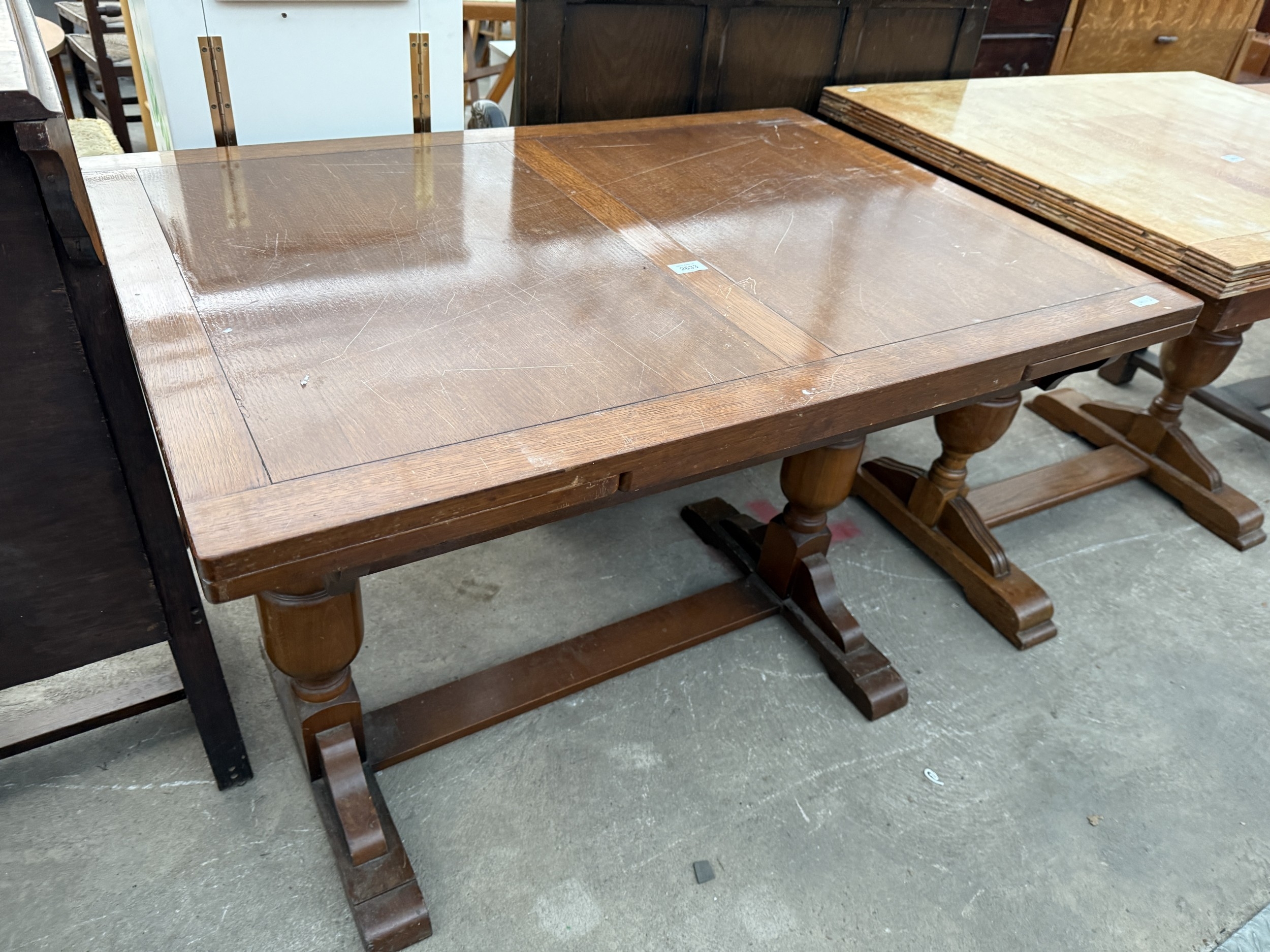A MID 20TH CENTURY OAK TWIN PEDESTAL DRAW LEAF DINING TABLE
