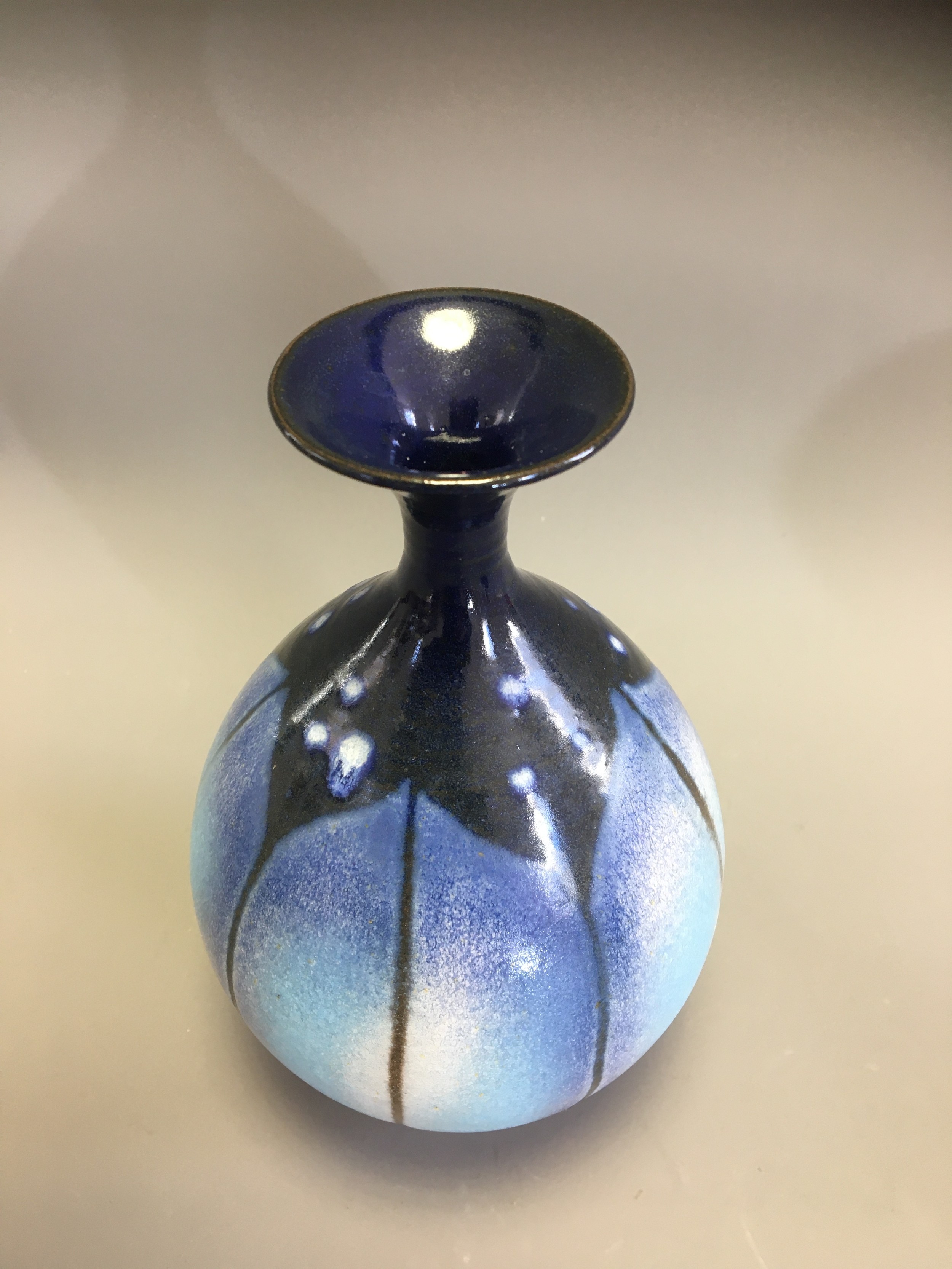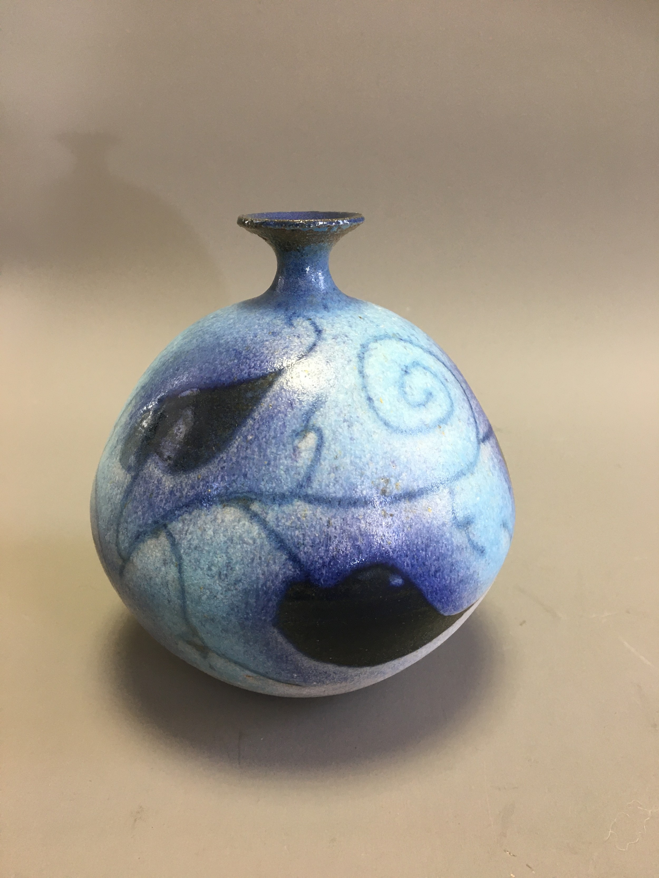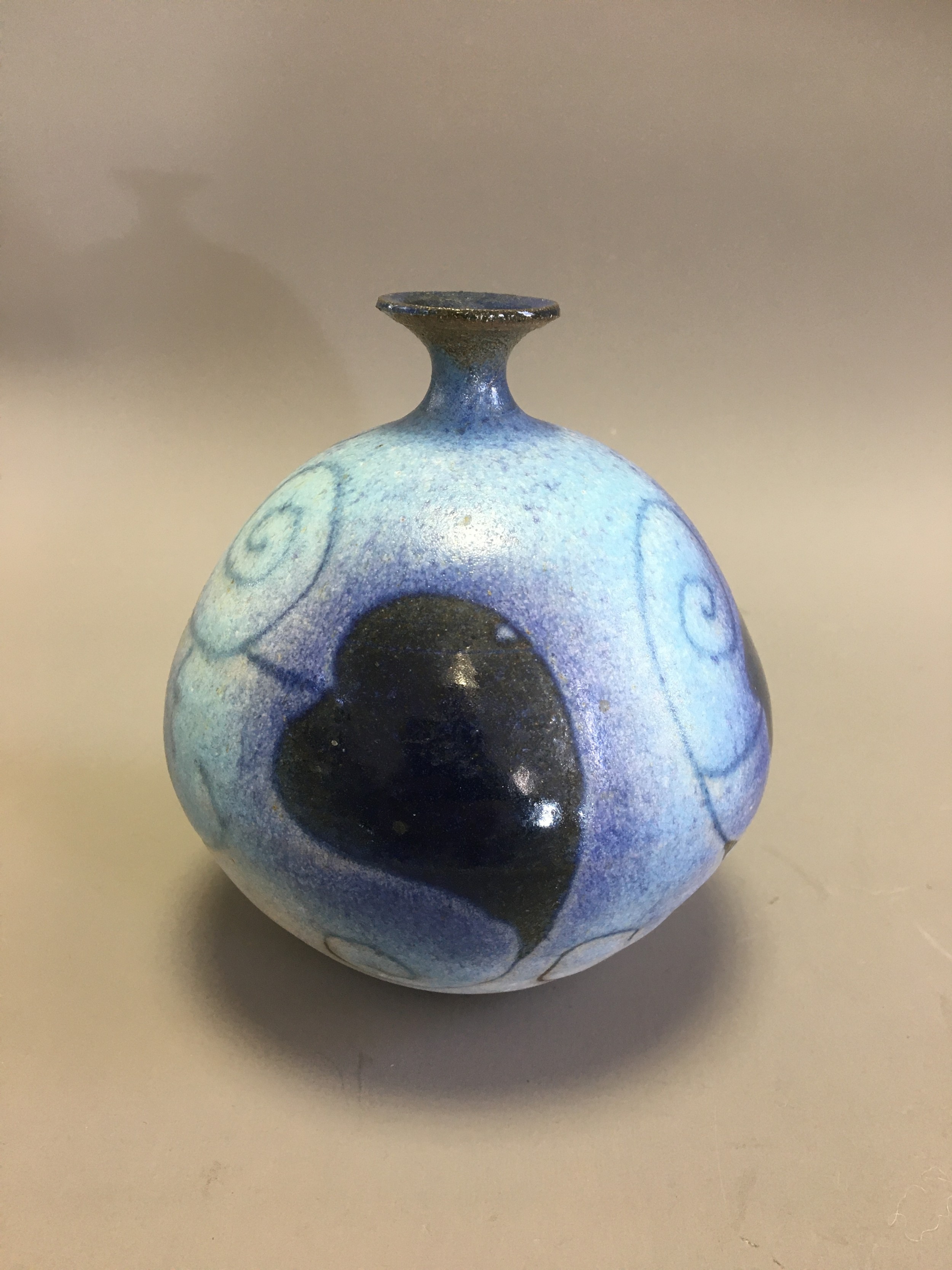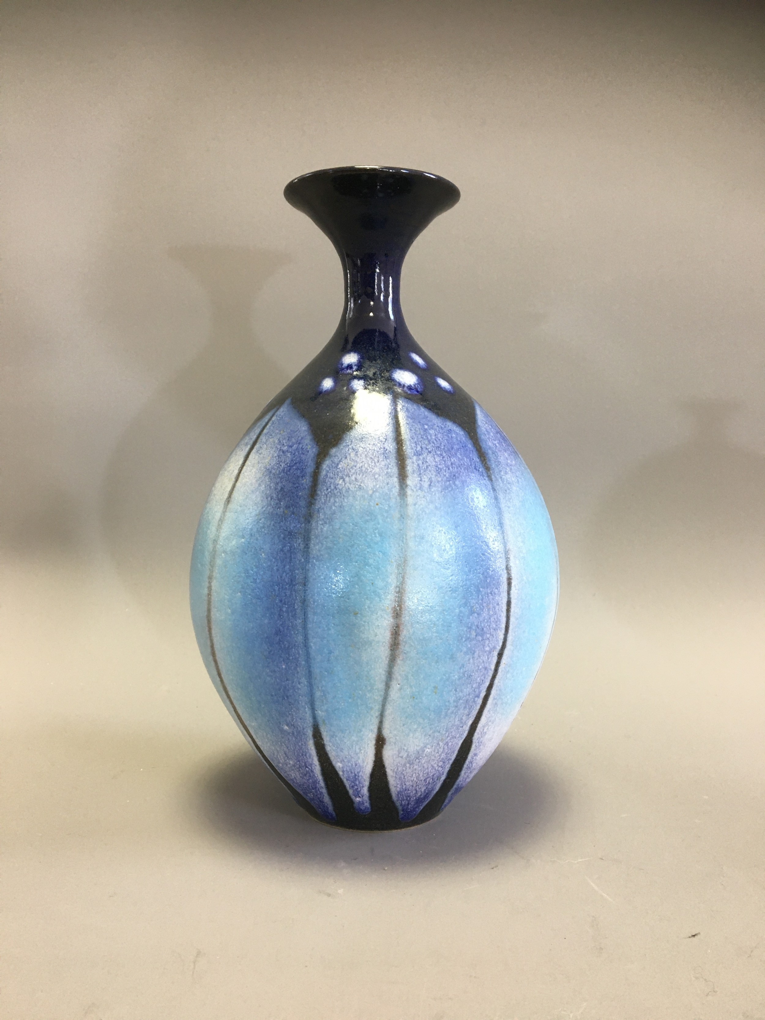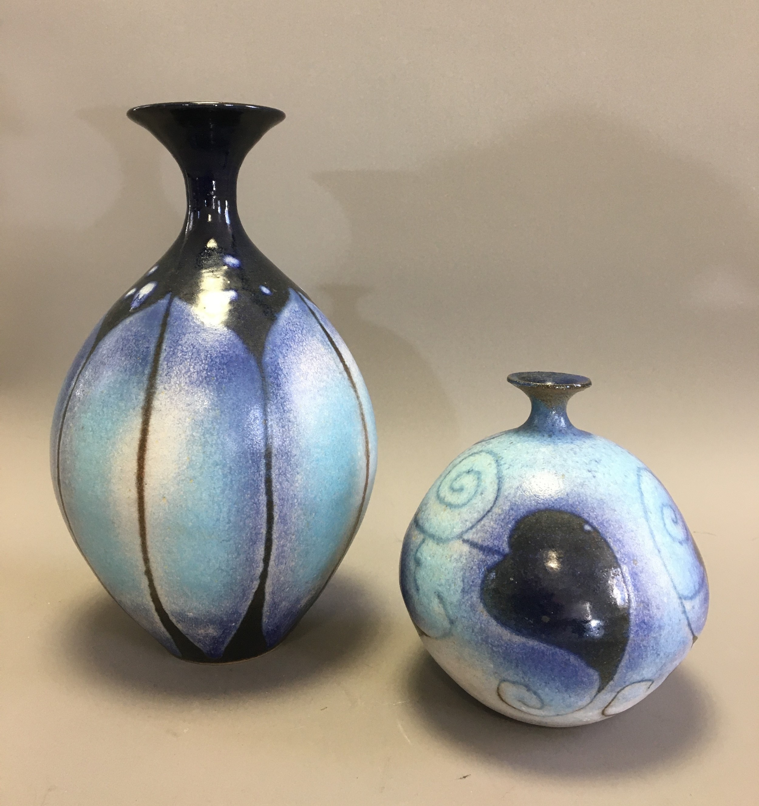 Graham Newing - Studio Pottery Vases. Blue Glazed in a Naturalistic Design both Marked to base.H 23cm (Tallest)
