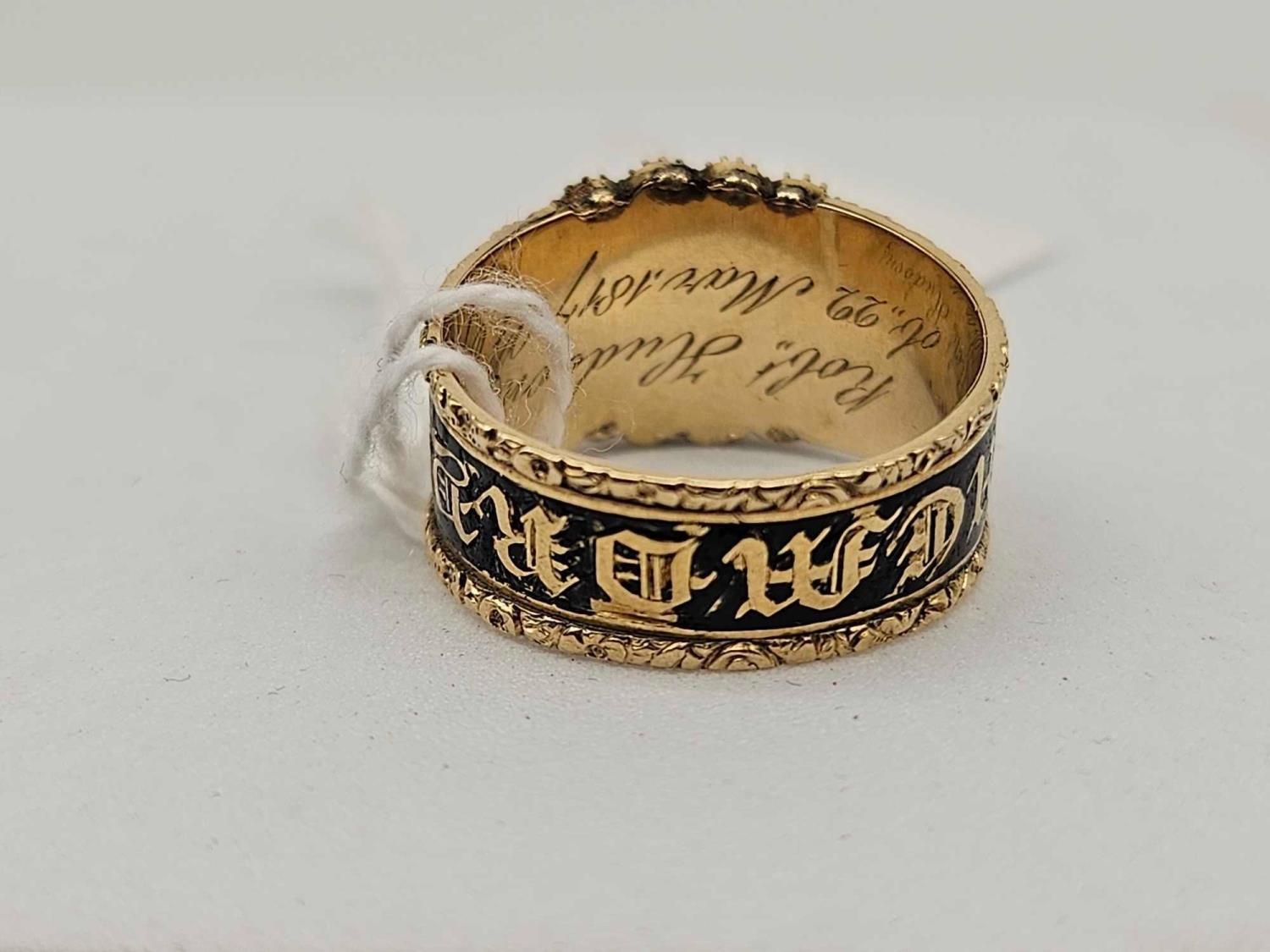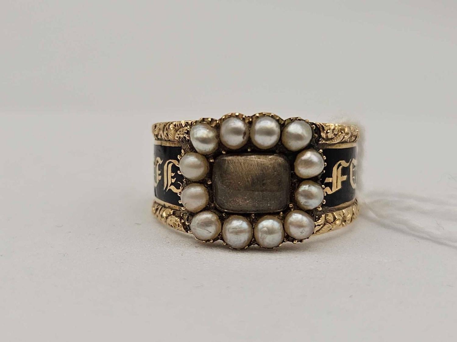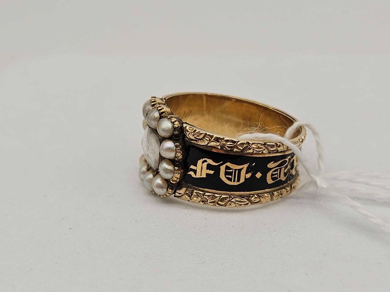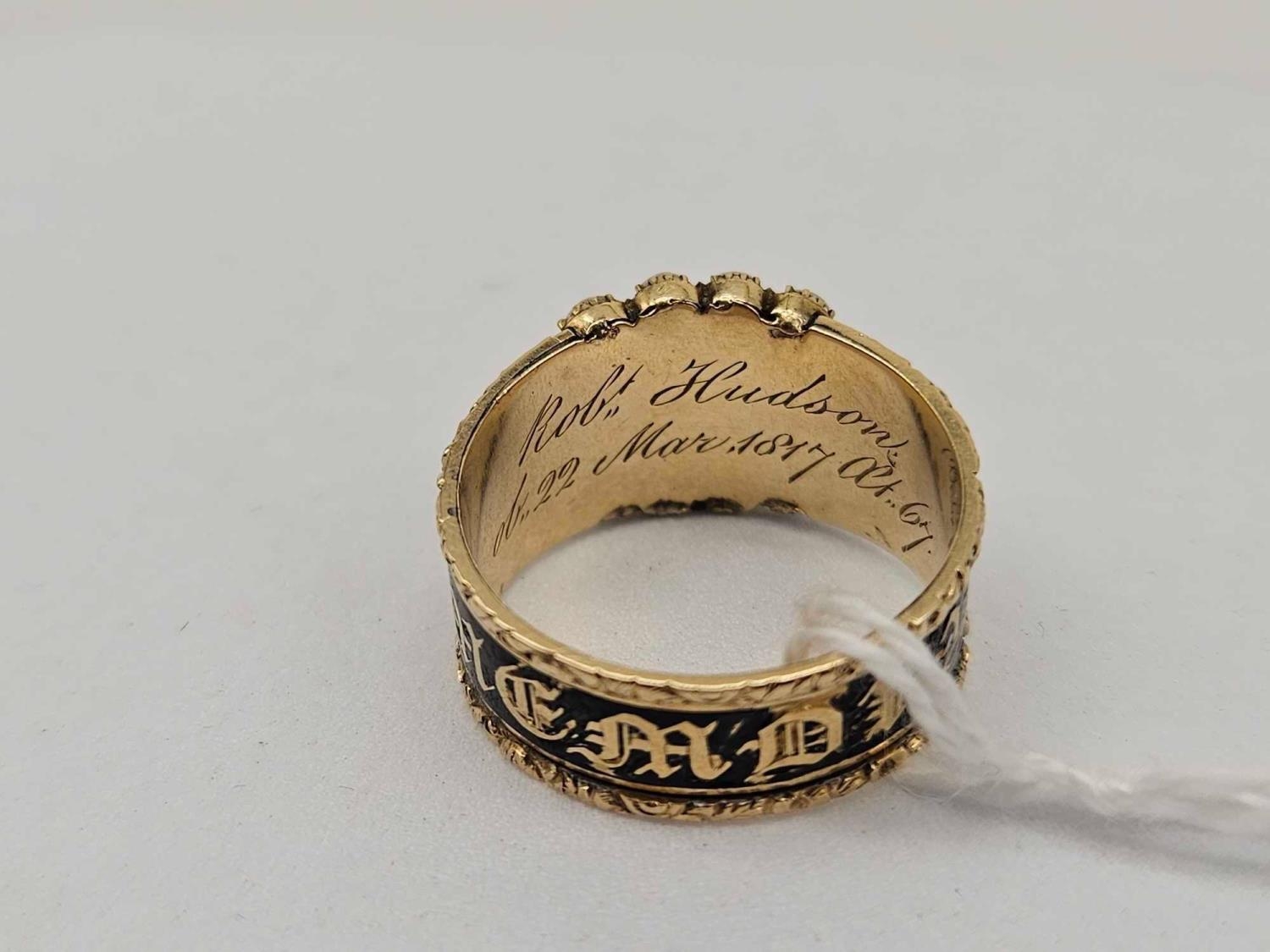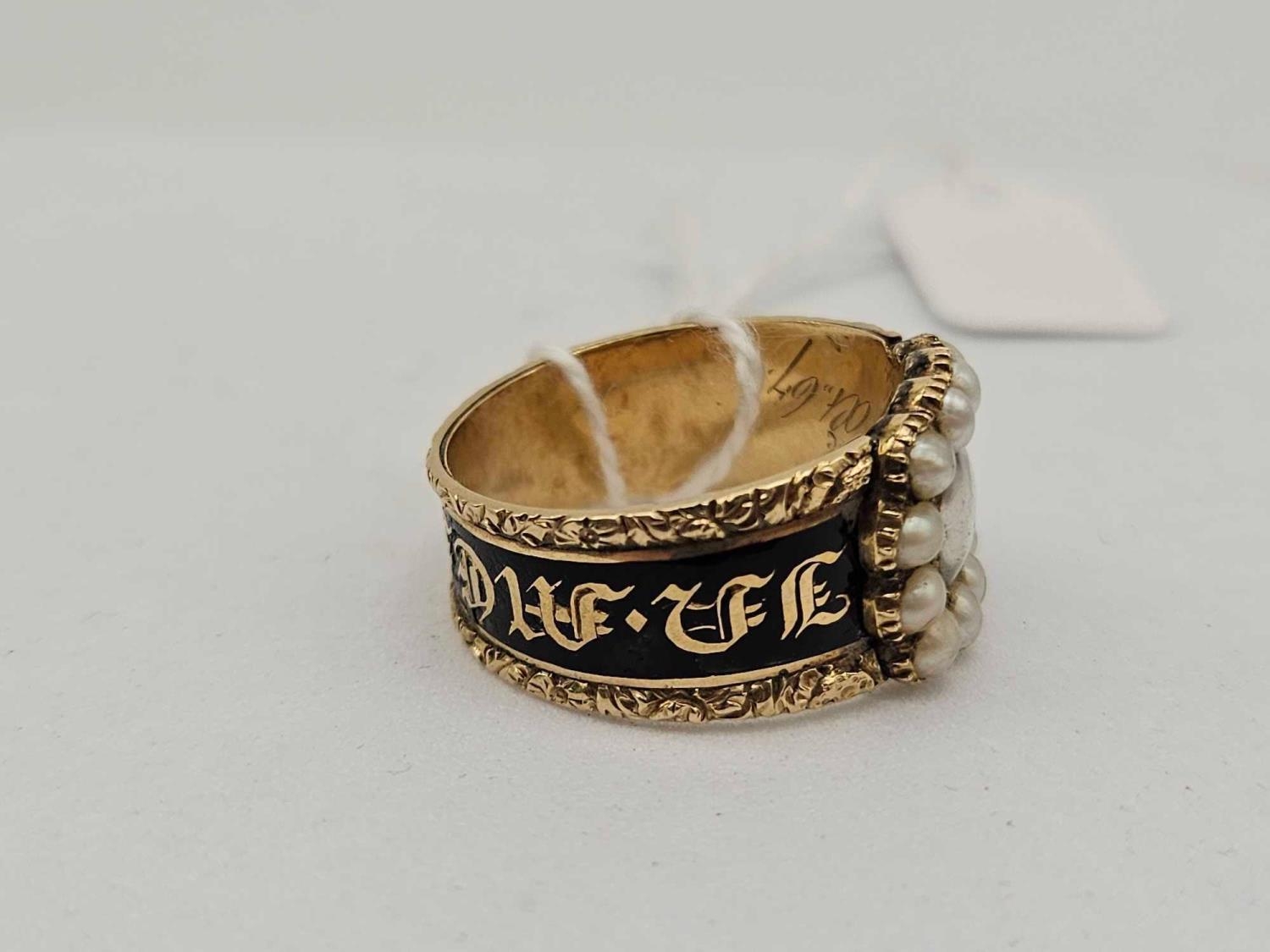 A REGENCY MOURNING RING 18CT SIZE T 6.6G