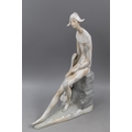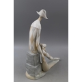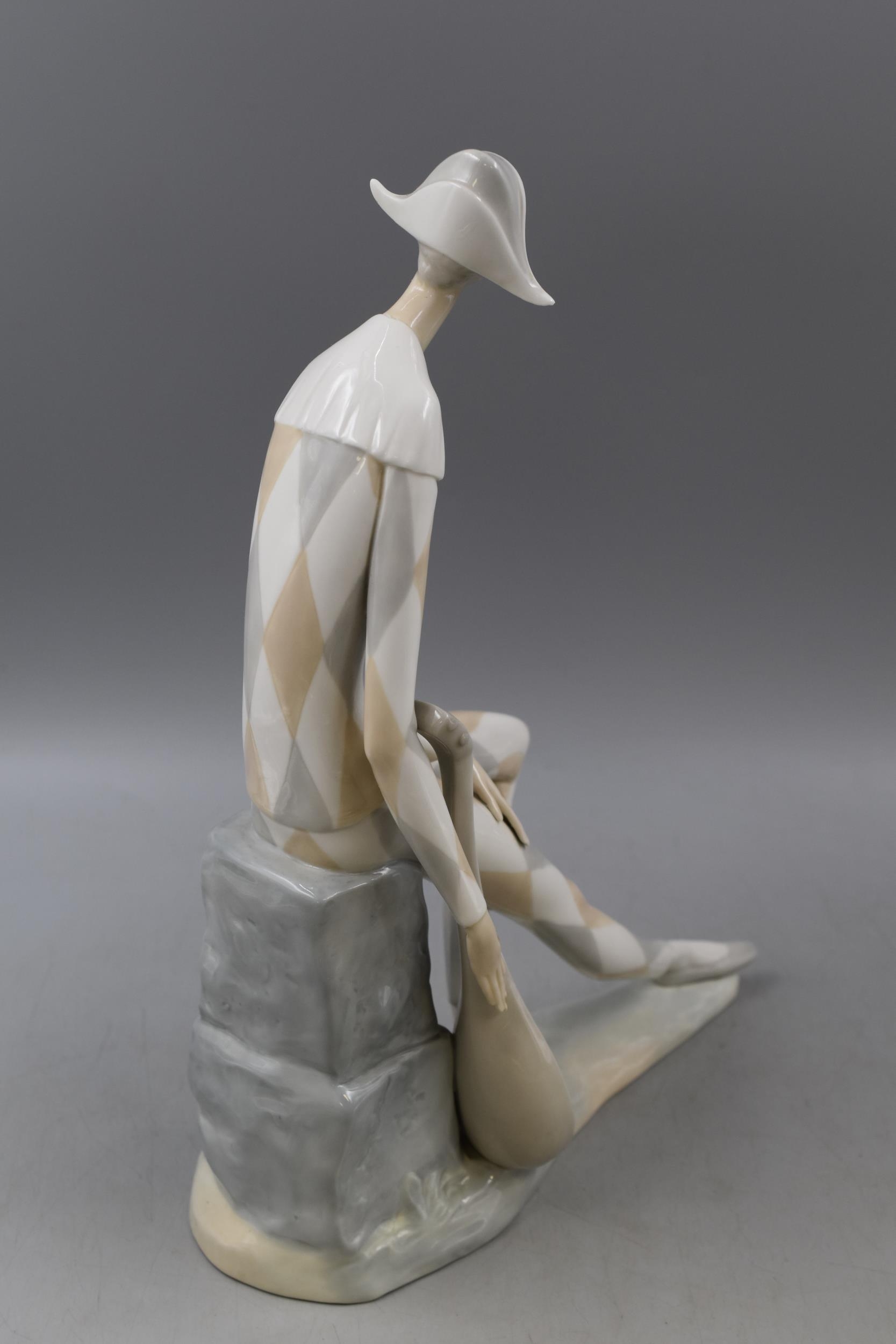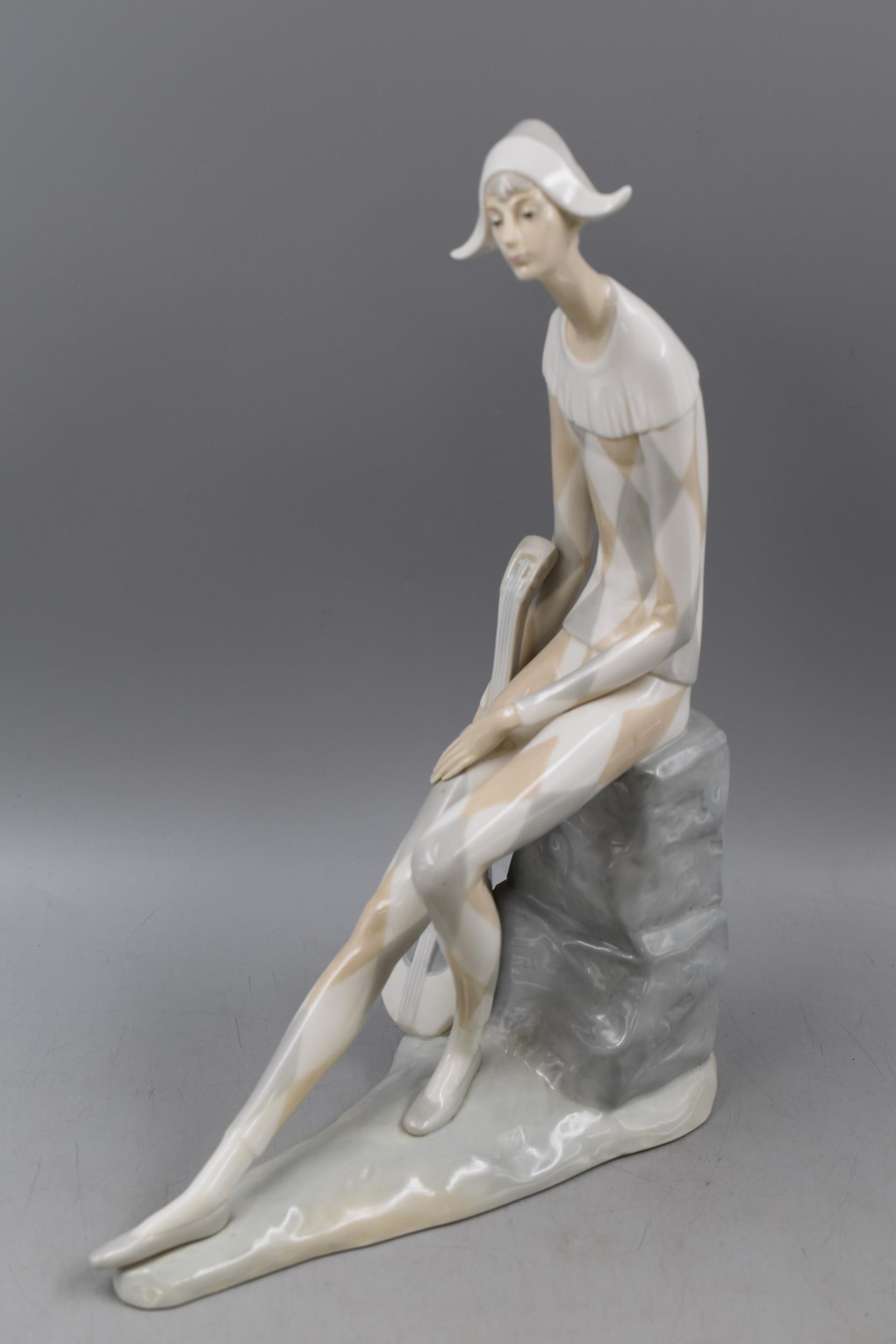 A Nao By Lladro Porcelain Figure, Harlequin Jester With Musical Instrument. Approx 14" Tall