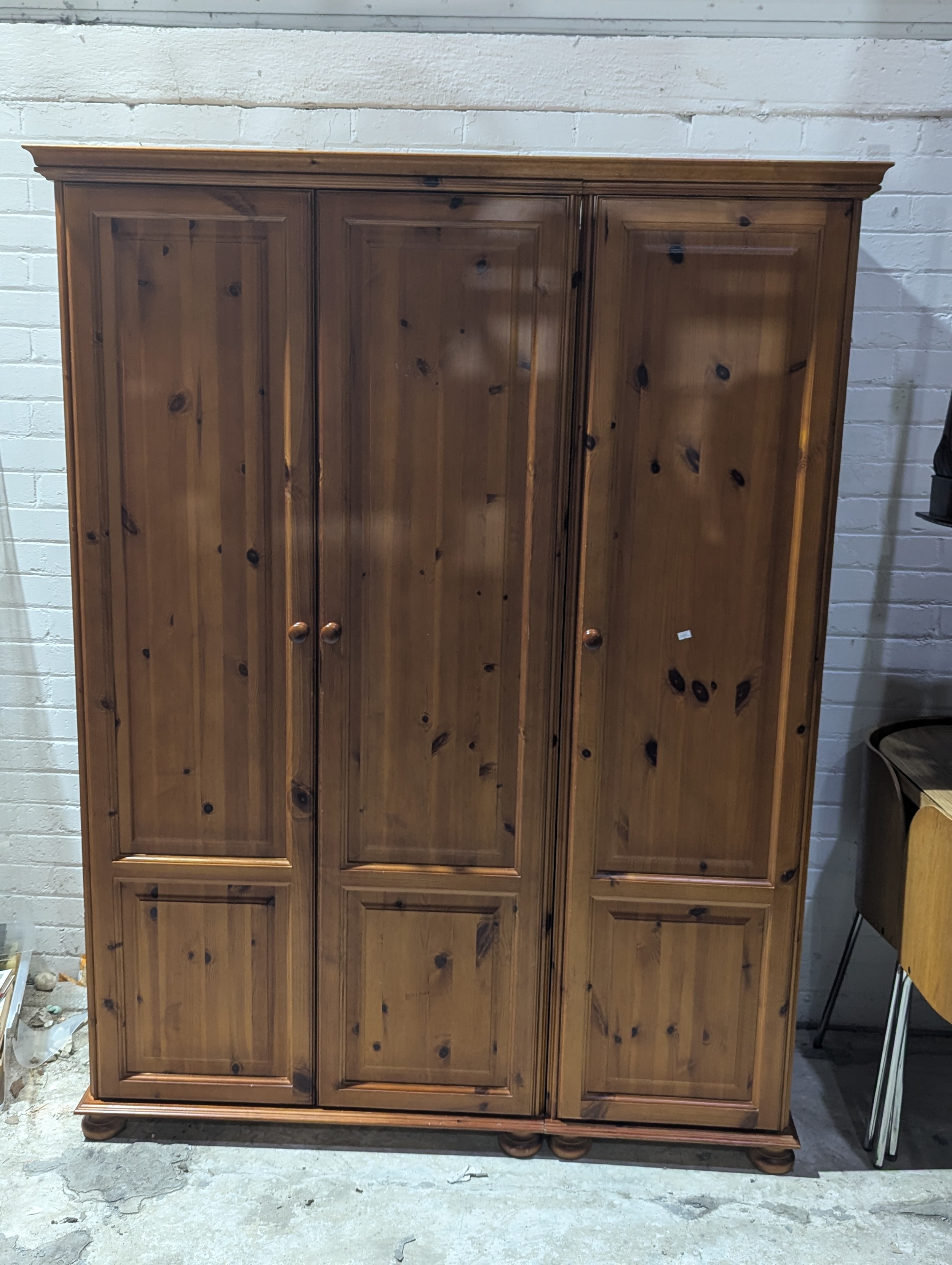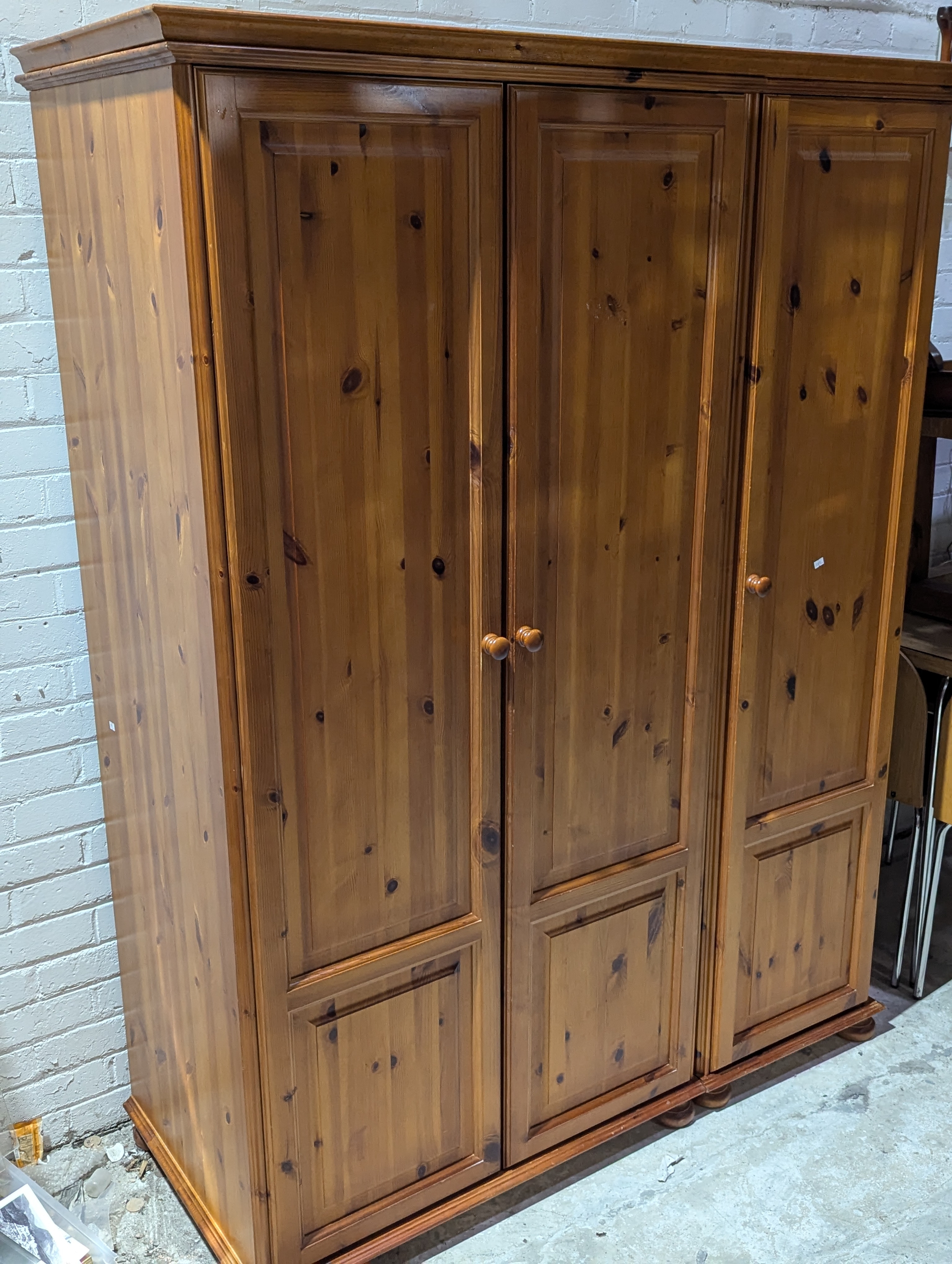 A large pine triple wardrobe, 138cm x 56cm x 180cm